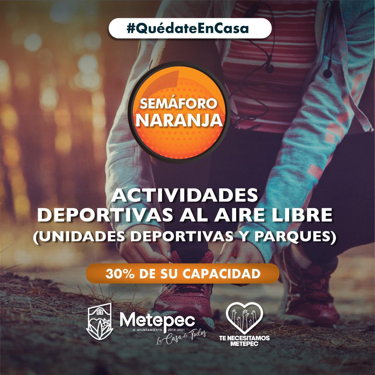 Inicio VIGILARÁ METEPEC LAS DISPOSICIONES SANITARIAS ANTE EL CAMBIO DE COLOR A NARANJA EN EL SEMÁFORO EPIDEMIOLÓGICO Por el Semáforo Naranja, con precaución, se reanudan las actividades deportivas 2021-02-14 at 2.30.54 PM