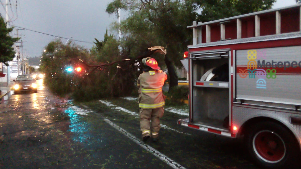 Granizada en Metepec.- Loa elementos del Cuerpo de Bomberos estuvieron muy atareados en apoyo a la población. 22-VII-2022