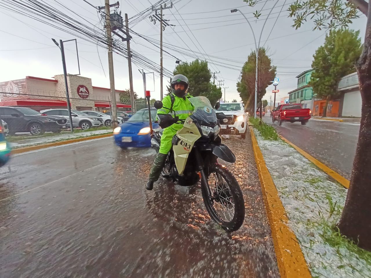 Granizada ern Metepec.- Elementos del Grupo Tlanchana efectuaron recorridos para destapar coladeras y reportar inundaciones.