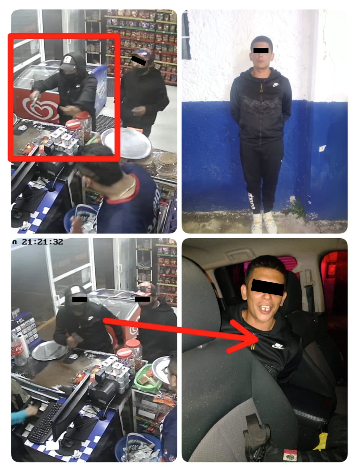 Asaltantes de comercios fueron detenidos en Metepec por las policias Municipal y Estatal.