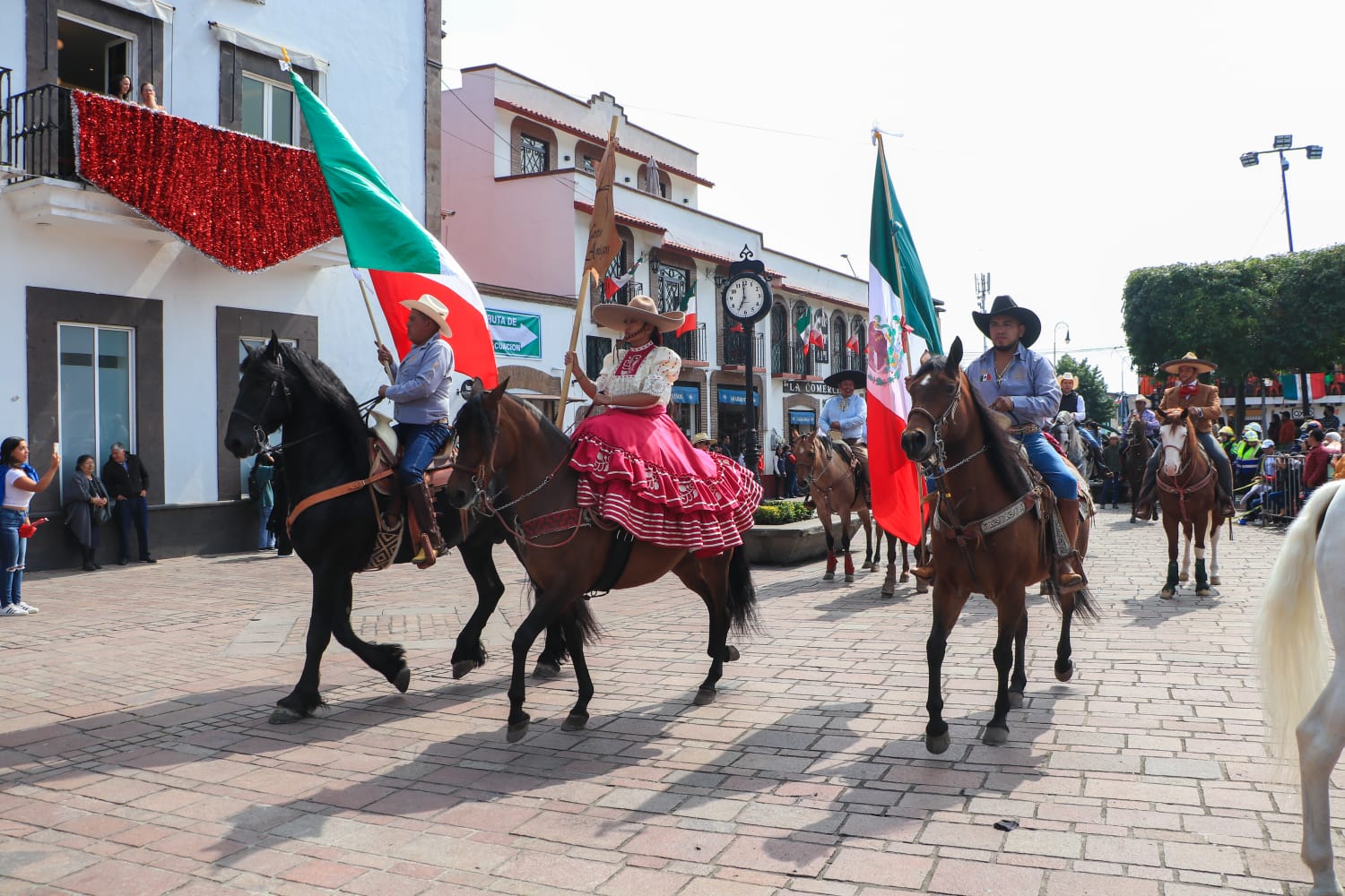 No podíann faltar los Charros en este desfile efectuado en Metepec con motivo de las Fiestas Patrias.