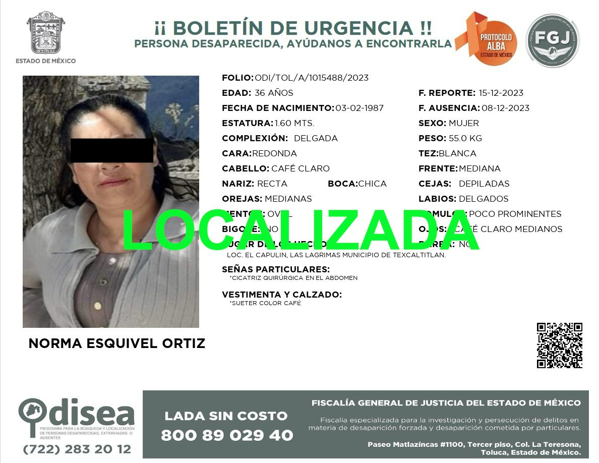 Texcaltitlán, localizada Norma Esquivel Ortiz