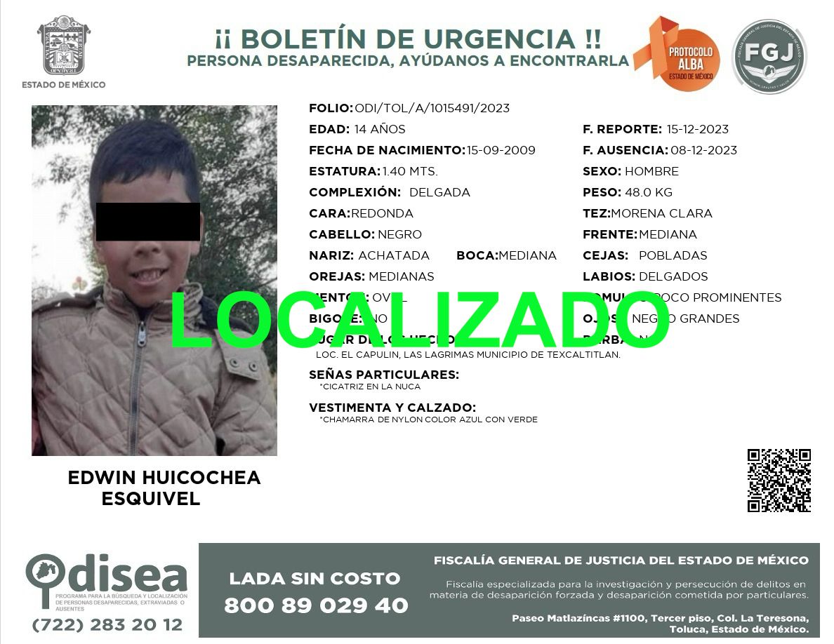 Texcaltitlán, localizado Edwin Huicochea Esquivel