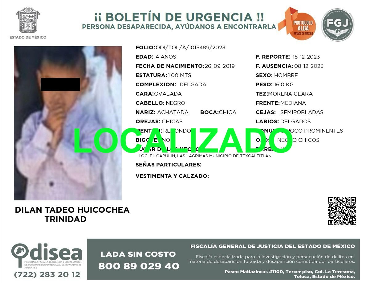 Texcaltitlán Localizado Dilan Tadeo