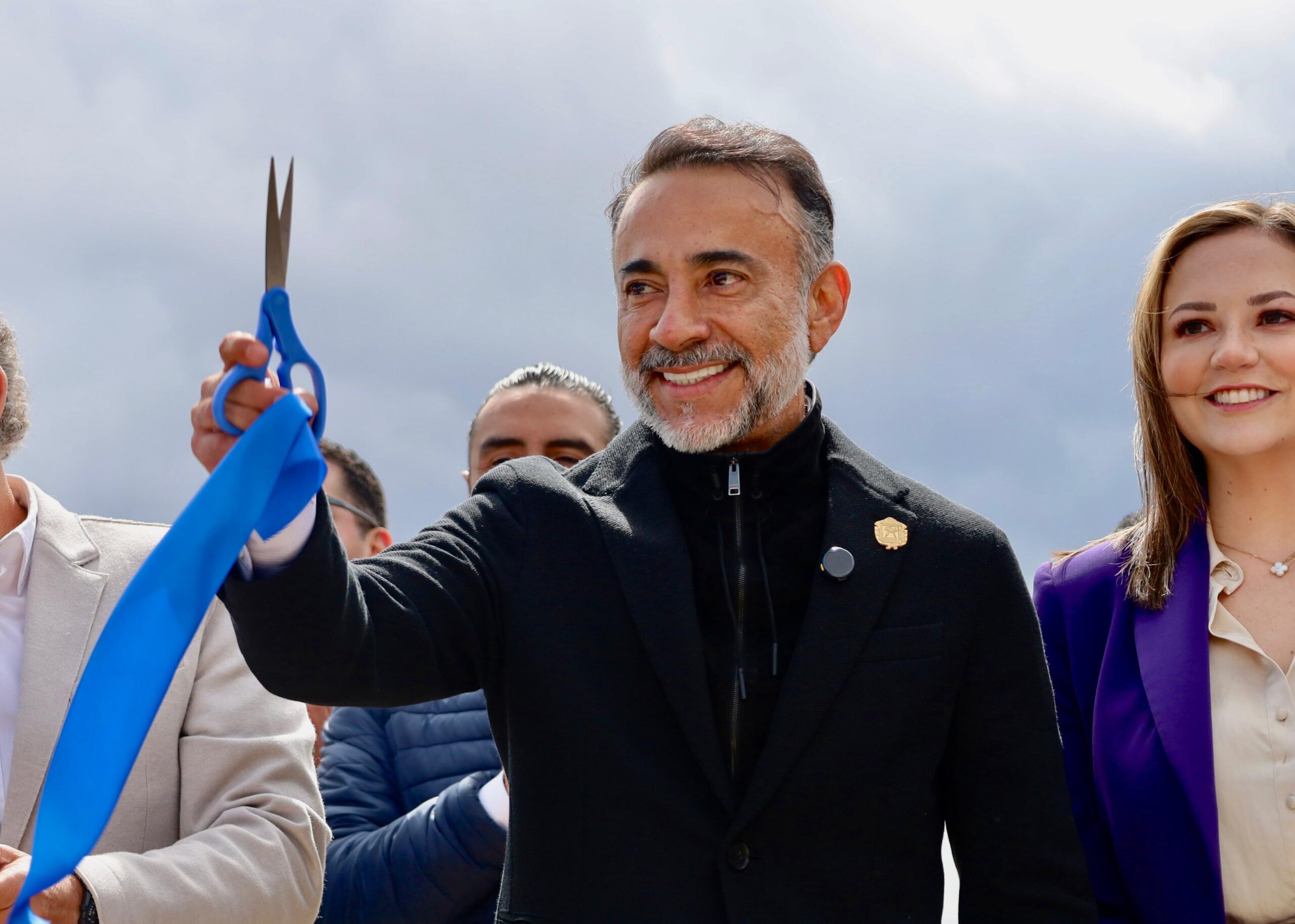 Fernando Flores Fernández en el corte del listón de la calle Manuel Arista.