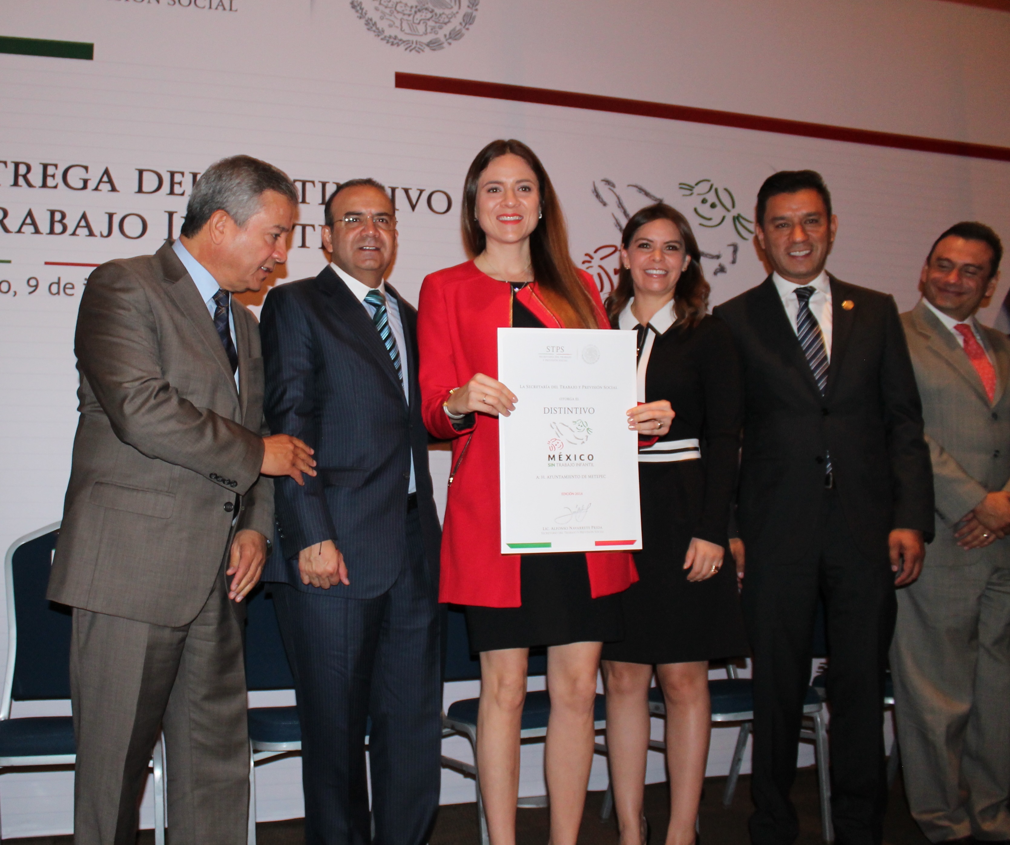 Pueblo Mágico de Metepec, México; 11 de junio de 2017. Por las acciones emprendidas para prevenir y erradicar el trabajo infantil, el ayuntamiento y el Sistema Municipal DIF de Metepec, recibieron el distintivo “México Sin Trabajo Infantil” (MEXSTI) edición 2016, otorgado por la Secretaría del Trabajo y Previsión Social.