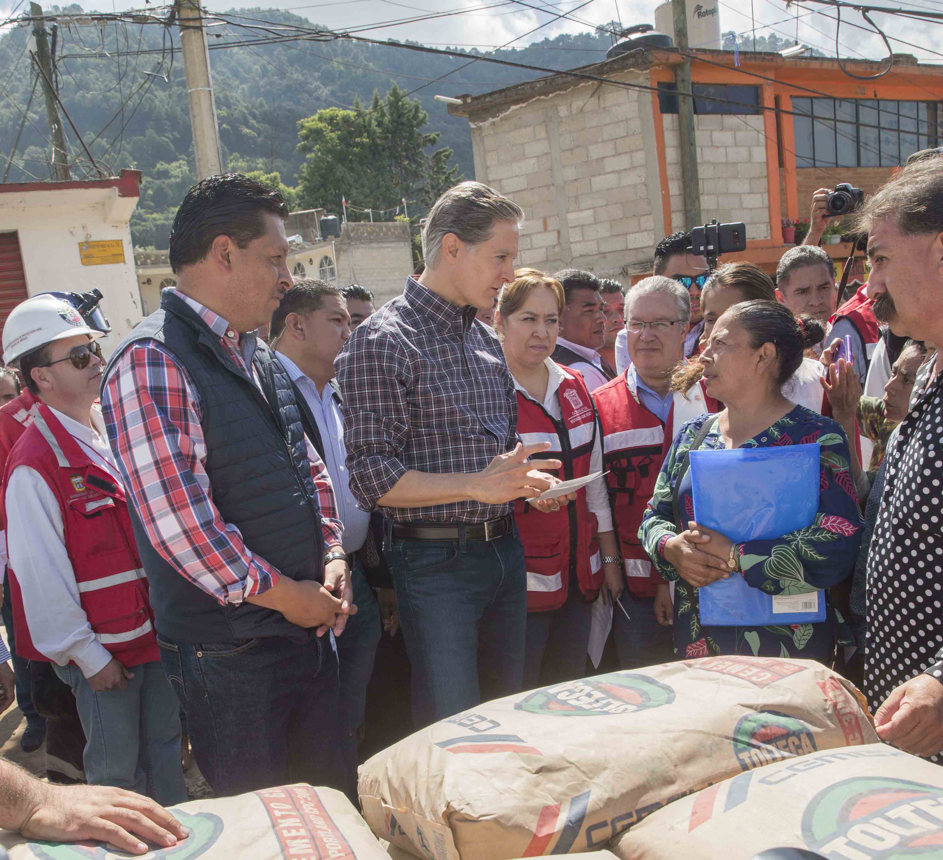 “Aquí algo muy importante es que ya estamos ayudando a las familias. En esta primera etapa estamos entregándoles cemento, estamos entregándoles varilla, para que inicien y que puedan hacer el piso firme, los castillos y las viviendas tengan los cimientos sólidos que se necesitan para pode aguantar pues cualquier circunstancia que la naturaleza nos depare hacia delante”, señaló el mandatario mexiquense.
