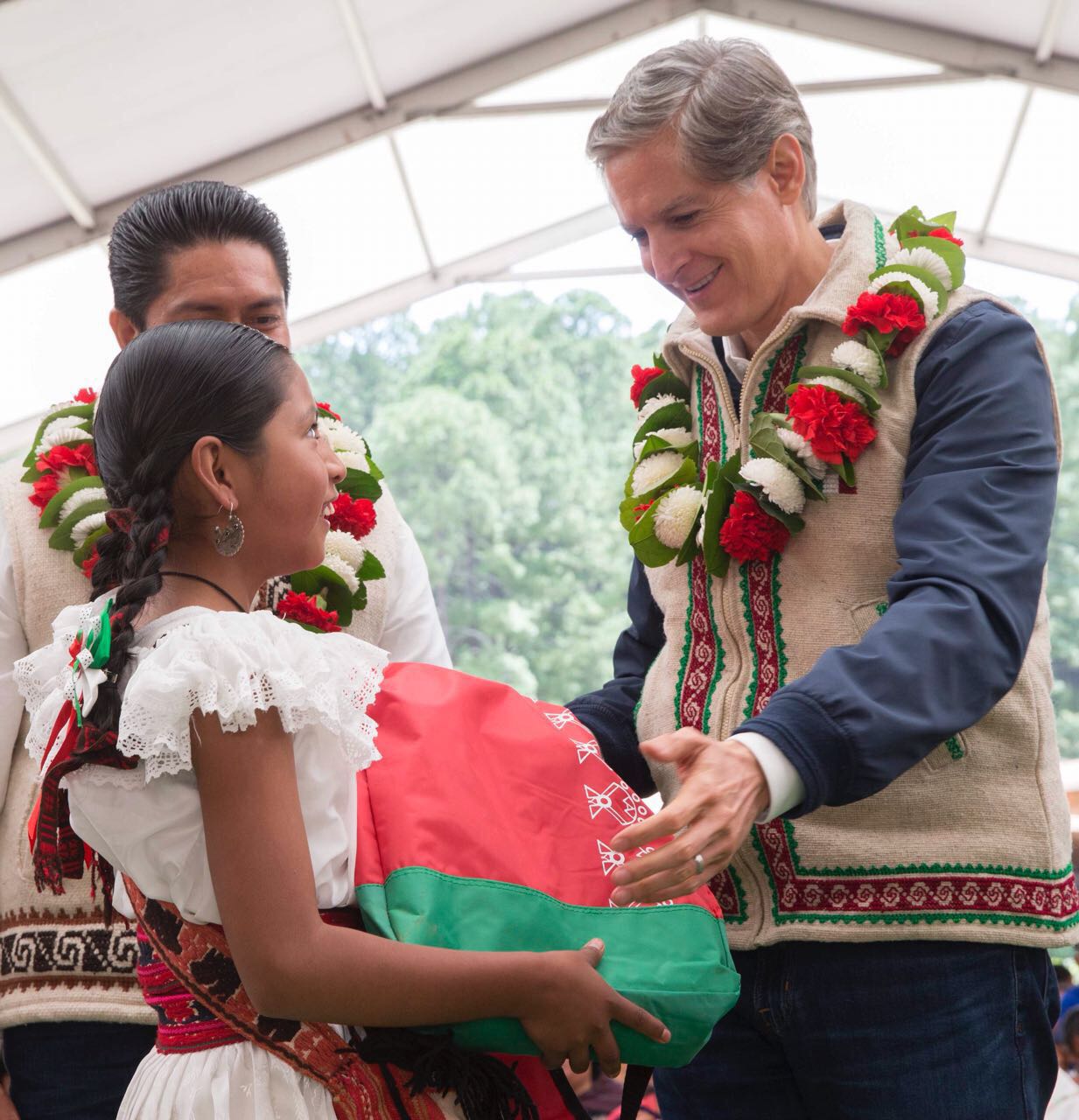 Alfredo Del Mazo invitó a la sociedad civil, a servidores públicos de los Poderes Ejecutivo, Legislativo y Judicial, además del sector empresarial, a sumarse al programa Apadrina a un Niño Indígena, para duplicar el número de beneficiarios que actualmente tiene un padrón de 10 mil menores de edad.