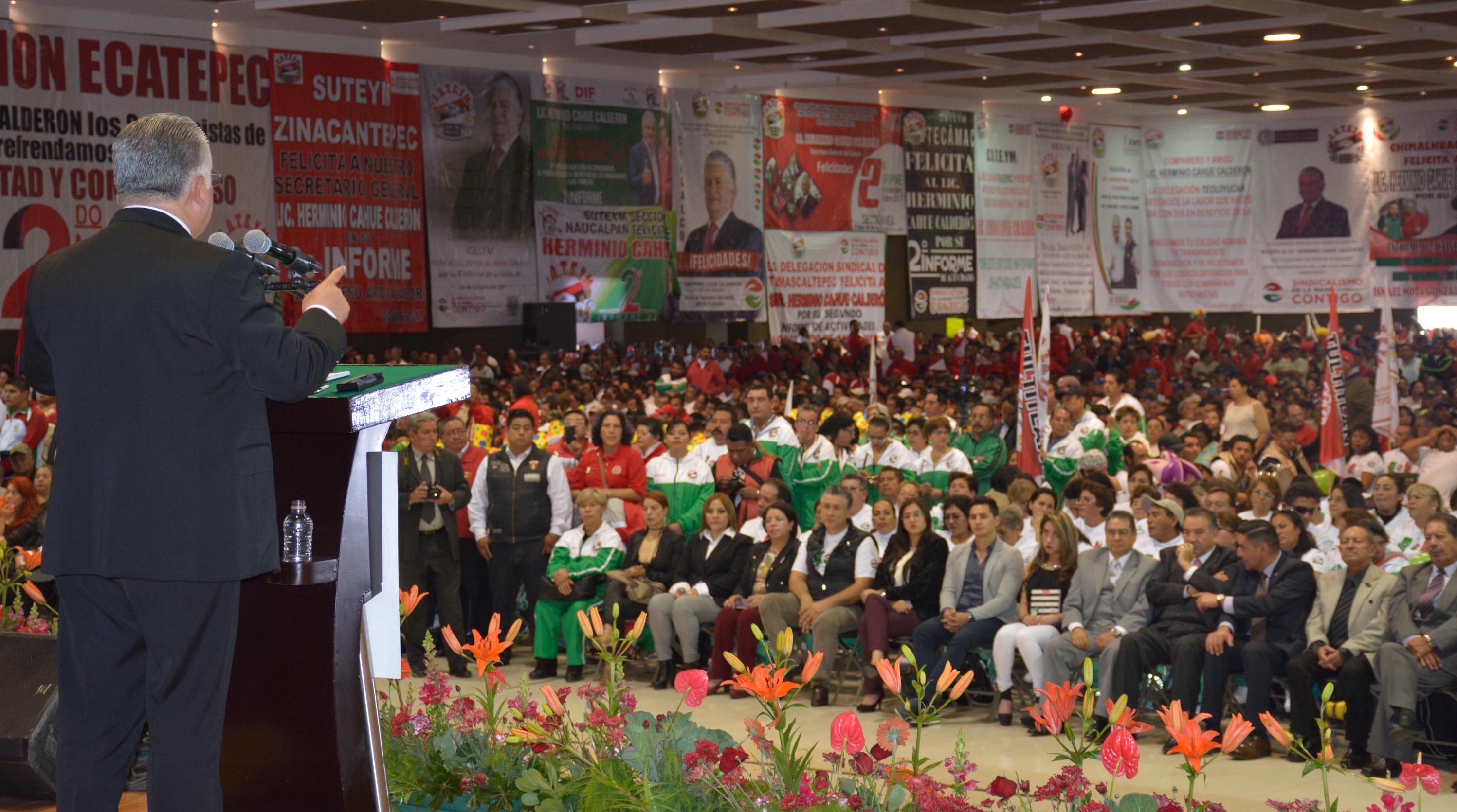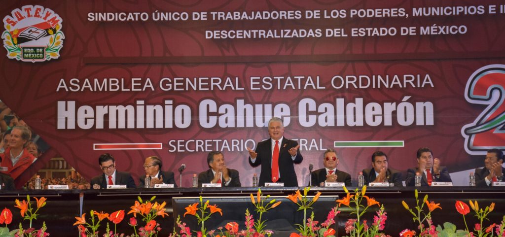 Zinacantepec, México, 20 de octubre de 2017. En Asamblea General Ordinaria, el Secretario General del SUTEYM, Lic. Herminio Cahue Calderón, rindió su Segundo Informe de Actividades, mismo que fue aprobado por unanimidad, y contó con la puntual asistencia de aproximadamente ocho mil delegados municipales, departamentales, secretarios seccionales, estructura sindical; así como, de ex secretarios generales de la organización, e invitados especiales.
