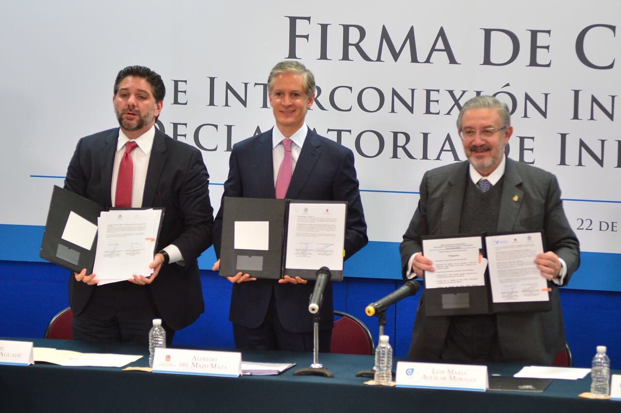 Ciudad de México, México, 22 de noviembre de 2017.- En la Firma de Convenios de Interconexión Interinstitucional, entre el Estado de México y el Poder Judicial de la Federación, el Gobernador Alfredo Del Mazo Maza aseguró que a través de estos acuerdos la entidad mexiquense moderniza su sistema de impartición de justicia y permite que el acceso a la misma sea más democrático, ágil y económico.