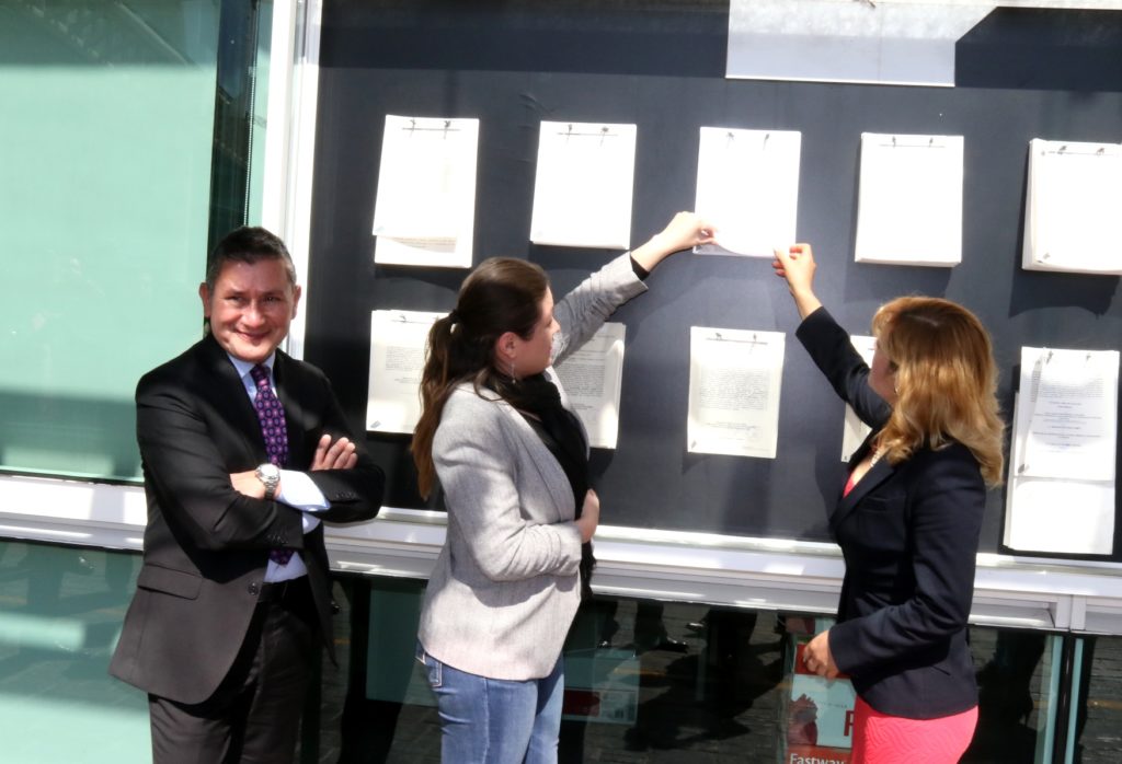 El día viernes 12 de enero los integrantes de la Comisión de Acceso a Medios, Propaganda y Difusión presidida por el Consejero Electoral, Saúl Mandujano Rubio e integrada por las Consejeras Electorales, María Guadalupe González Jordan y Laura Daniella Durán Ceja fijaron en los estrados del órgano central los 150 folios de las y los aspirantes seleccionados a monitoristas, actividad que también se realizó en los 170 órganos desconcentrados, además de su publicación en la página electrónica del Instituto www.ieem.org.mx.