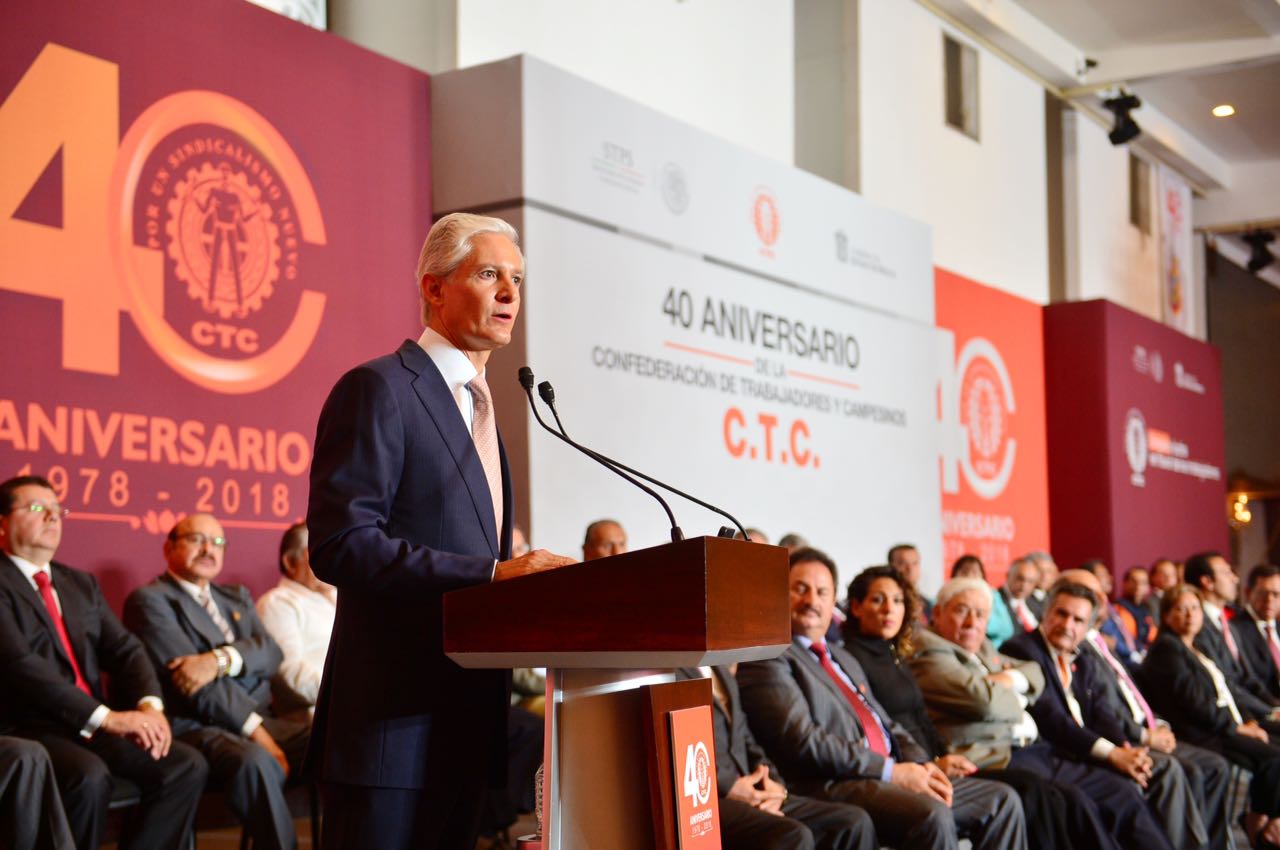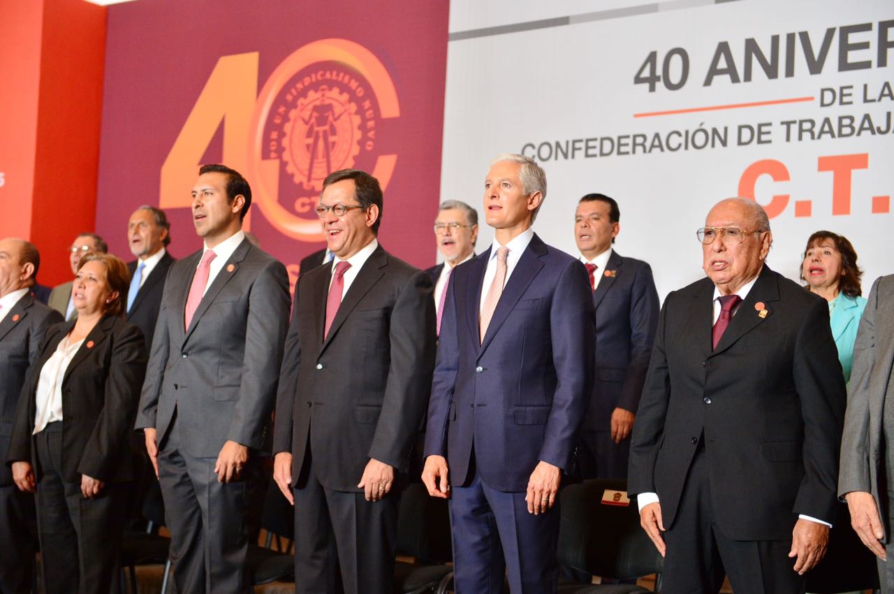 “Hoy que celebramos juntos sus primeros 40 años de existencia, los mexiquenses reconocemos en la CTC, una organización responsable y vanguardista que, con gran vocación social, ha puesto al trabajador en el centro de las acciones sindicales”, puntualizó.