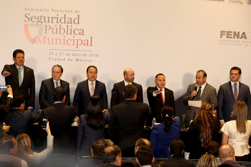 Ciudad de México; 29 de abril de 2018. En el marco del Seminario Nacional de Seguridad Pública Municipal, el alcalde de Metepec, David López Cárdenas, rindió protesta como presidente adjunto del Consejo Directivo de la Federación Nacional de Municipios de México (FENAMM).