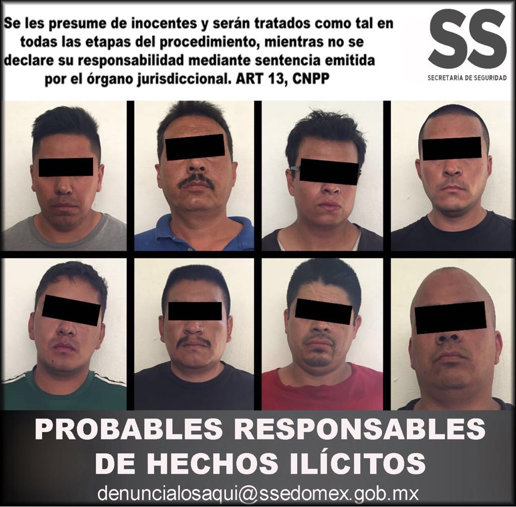 Jorge “N”, de 28 años; Mario “N”, de 35; Alonso “N”, de 30; Hugo “N”, de 38; Daniel “N”, de 41; Héctor “N”, de 41, y Alejandro “N”, de 34 años de edad, respectivamente, fueron aprehendidos luego de que se corroboró que el automotor correspondía al reportado como robado.