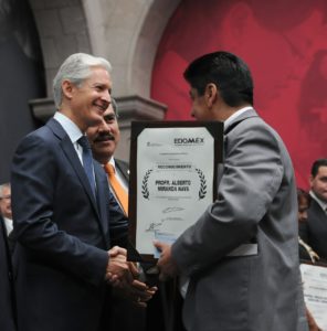 •Reciben profesores la presea “Honor Estado de México”, la condecoración “Maestro Ignacio Manuel Altamirano” y el estímulo Laura Méndez de Cuenca.