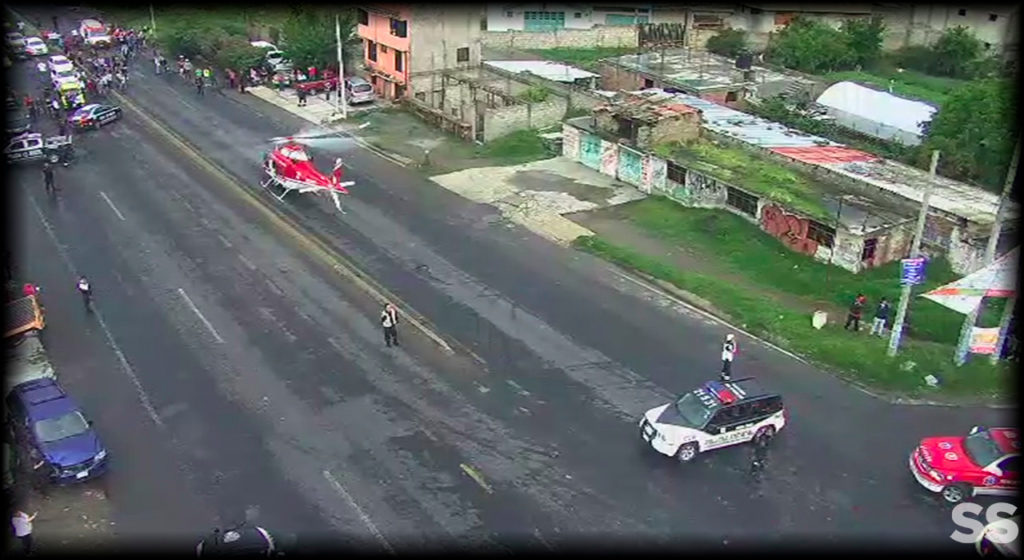 Los hechos se suscitaron poco después de las 19:00 horas de este domingo en la Avenida México, colonia San Juan de las Huertas, donde quedaron lesionados el probable responsable y un elemento de la Secretaría de Seguridad; éste último fue trasladado por vía aérea por un helicóptero Relámpago al hospital más cercano.