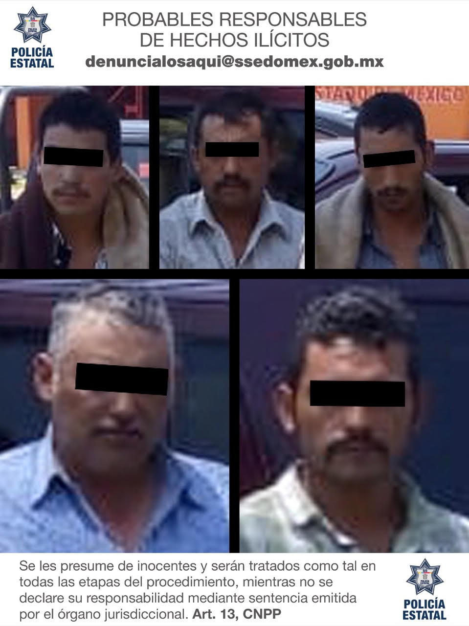 En el automotor viajaban Juan «N», de 56 años de edad; Juan Carlos «N», de 23; Antonio «N», de 26; Jesús «N», de 35, y Gabino «N», de 20 años, todos consanguíneos y originarios del municipio de Almoloya de Juárez.