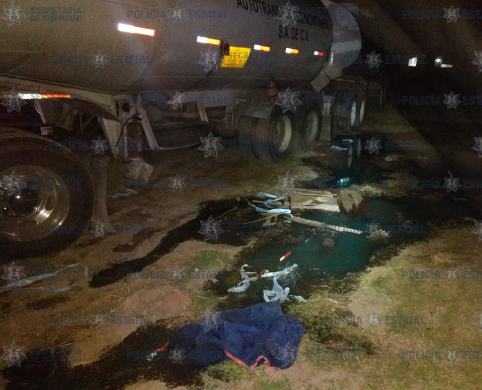 Al llegar al lugar, los policías estatales visualizaron un tractocamión abandonado, que remolcaba dos tanques cisterna, tipo salchicha; cada uno con capacidad de 30 mil litros, uno de los cuales estaba lleno en su totalidad, mientras que el otro al 50 por ciento aproximadamente de una sustancia con las características propias del hidrocarburo, dando un total aproximado de 45 mil litros.