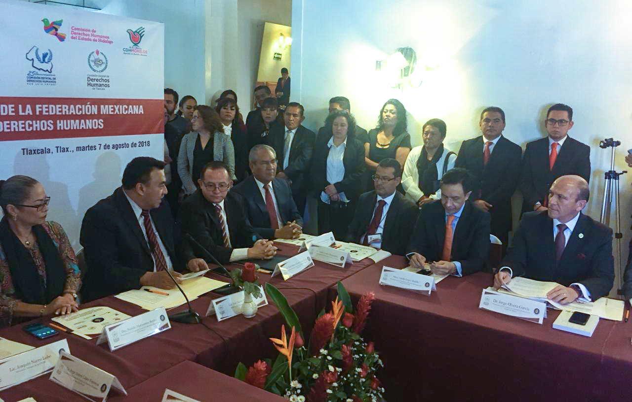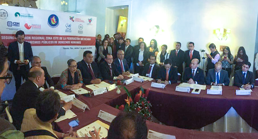 Tlaxcala, México, 7 de Agosto de 2018.- Los organismos públicos de derechos humanos tienen la obligación de garantizar que las prerrogativas de los migrantes sean efectivas y proteger sus libertades, así como la responsabilidad de combatir cualquier expresión de discriminación y toda forma de violencia que afecte su dignidad, se indicó durante la inauguración de la Segunda Reunión Regional de la Zona Este de la Federación Mexicana de Organismos Públicos de Derechos Humanos, a la que asistió el Primer Visitador General de la Comisión de Derechos Humanos del Estado de México (Codhem), José Benjamín Bernal Suárez, en representación del ombudsperson mexiquense, Jorge Olvera García.