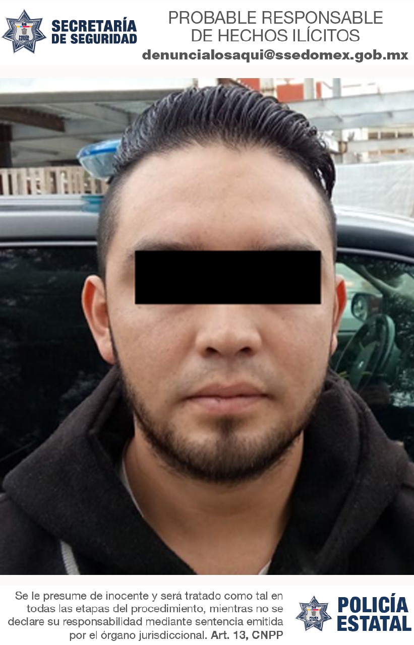 Por la posesión de presunto enervante, el detenido fue conducido a la Fiscalía General de Justicia del Estado de México (FGJEM), con sede en la capital de la entidad, por el presunto delito contra la salud.