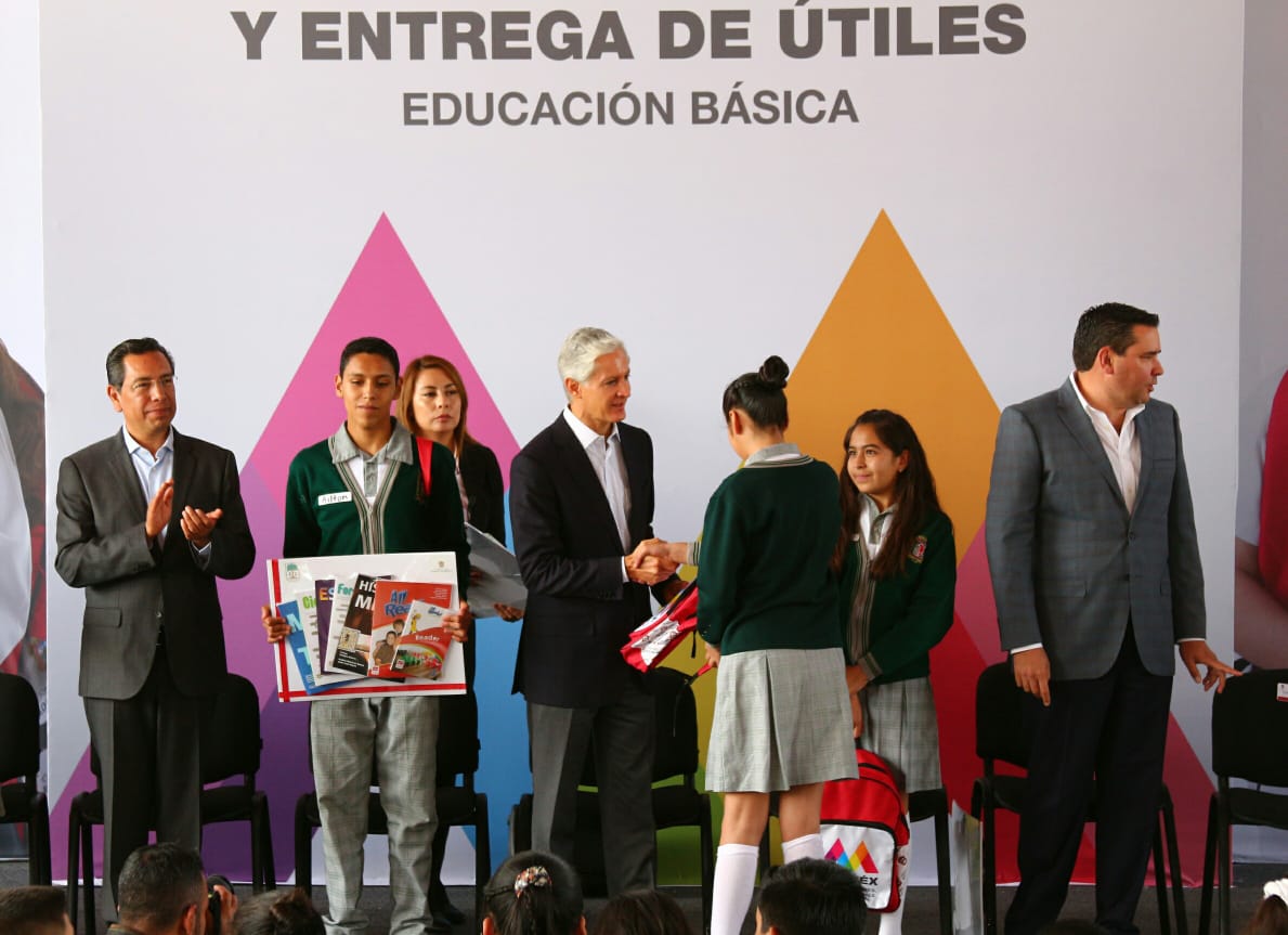 Alfredo Del Mazo manifestó que el Estado de México cuenta con un sistema educativo fuerte y preparado, y que con la puesta en marcha de programas como el de Familias fuertes, con útiles escolares, se busca que ningún estudiante se quede sin acceso a la educación por falta de recursos económicos.