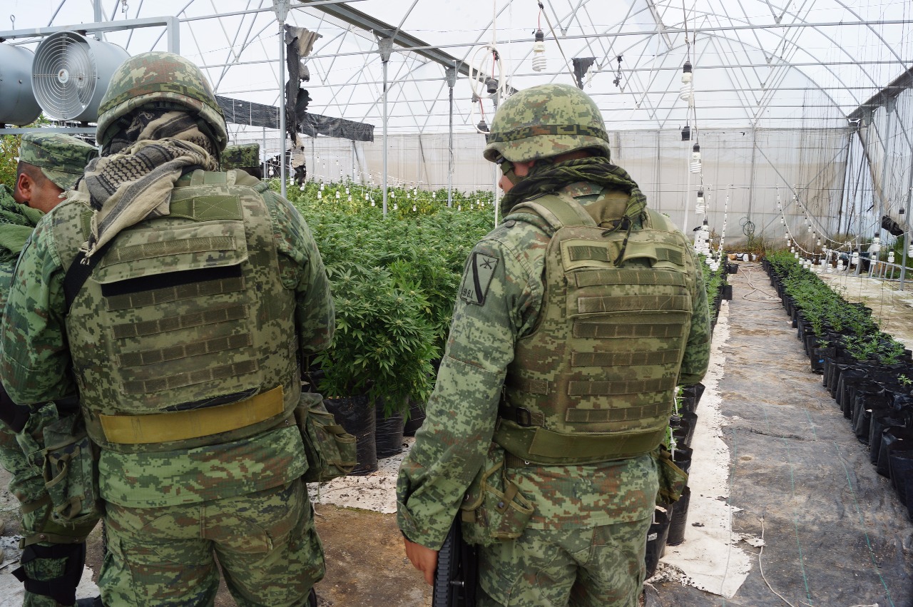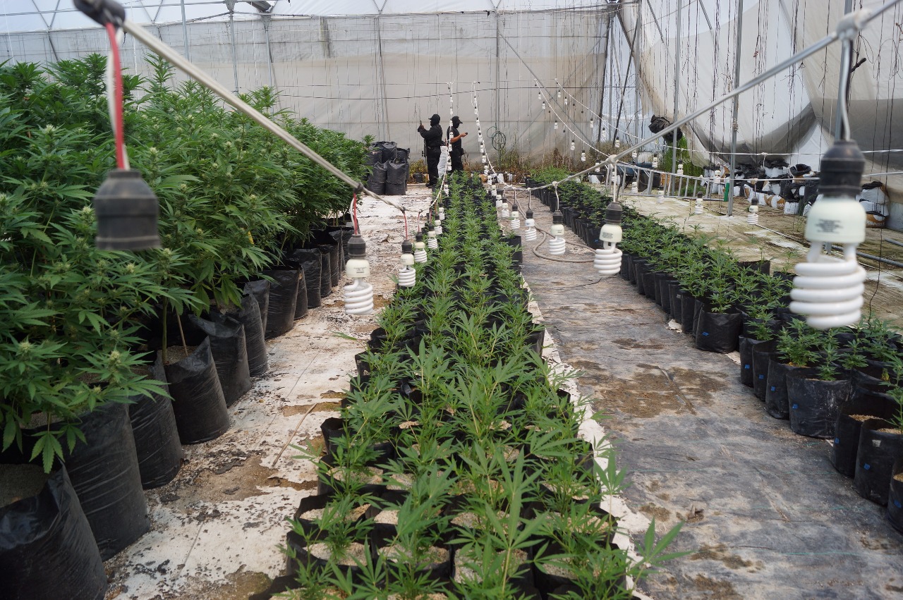 Al interior del invernadero fueron localizadas más de mil plantas de marihuana de diversos tamaños, mimas que van desde plantas recién sembradas hasta plantas de casi dos metros de altura; el lugar contaba con instalaciones eléctricas, luz artificial y aire acondicionado para el correcto crecimiento de las plantas.