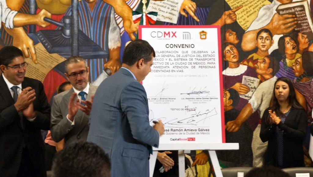 Este convenio lo firmaron en la sede del Gobierno Capitalino el titular de la FGJEM, Alejandro Gómez y Jorge Javier Jiménez Alcaraz, Director General del Sistema de Transporte Colectivo, además el Jefe de Gobierno de la Ciudad de México (CDMX) José Ramón Amieva Gálvez, firmó como testigo.