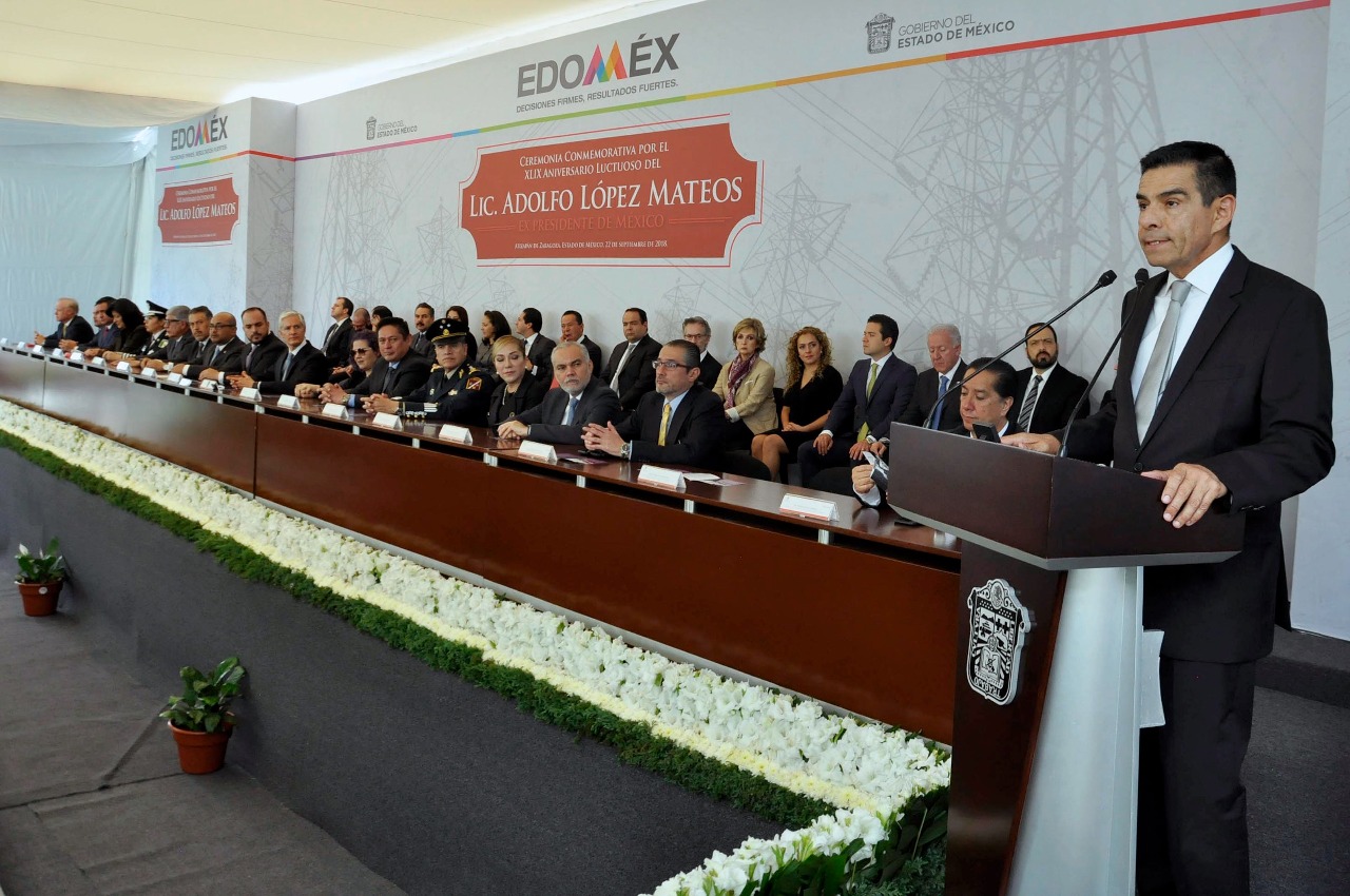 En presencia del Gobernador Alfredo Del Mazo, manifestó que López Mateos es recordado en su aniversario luctuoso como uno de los más grandes líderes, que asumió el reto de hacer grande a su patria chica, impulsando la grandeza del país.