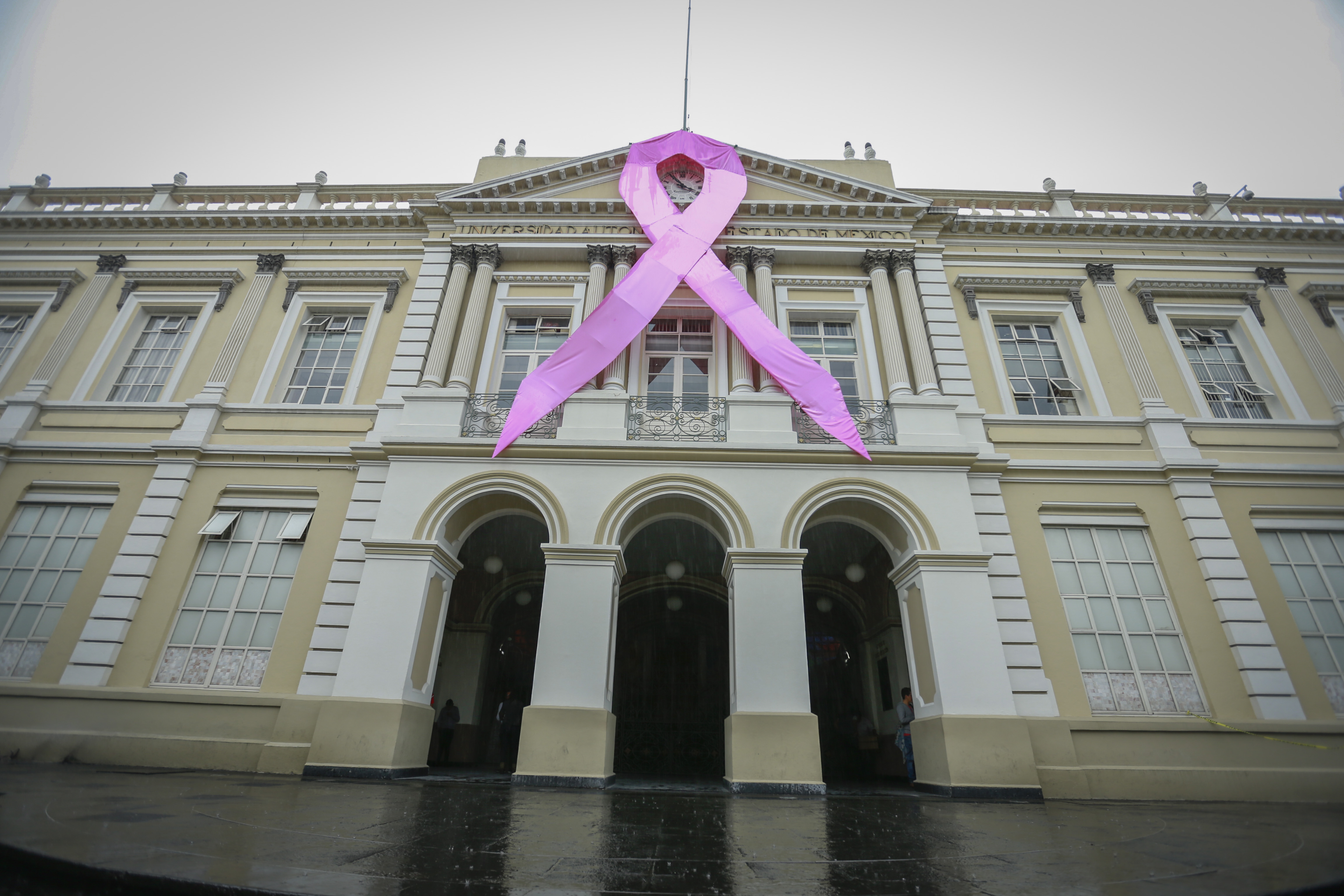 La Universidad Autónoma del Estado de México se suma durante este octubre, a la campaña mundial “Mes de la sensibilización sobre el cáncer de mama”. El moño color rosa colocado en el histórico Edificio de Rectoría de esta casa de estudios tiene como propósito abonar a la cultura de la prevención, promover entre las universitarias y la población en general la detección y atención oportunas del cáncer de mama.