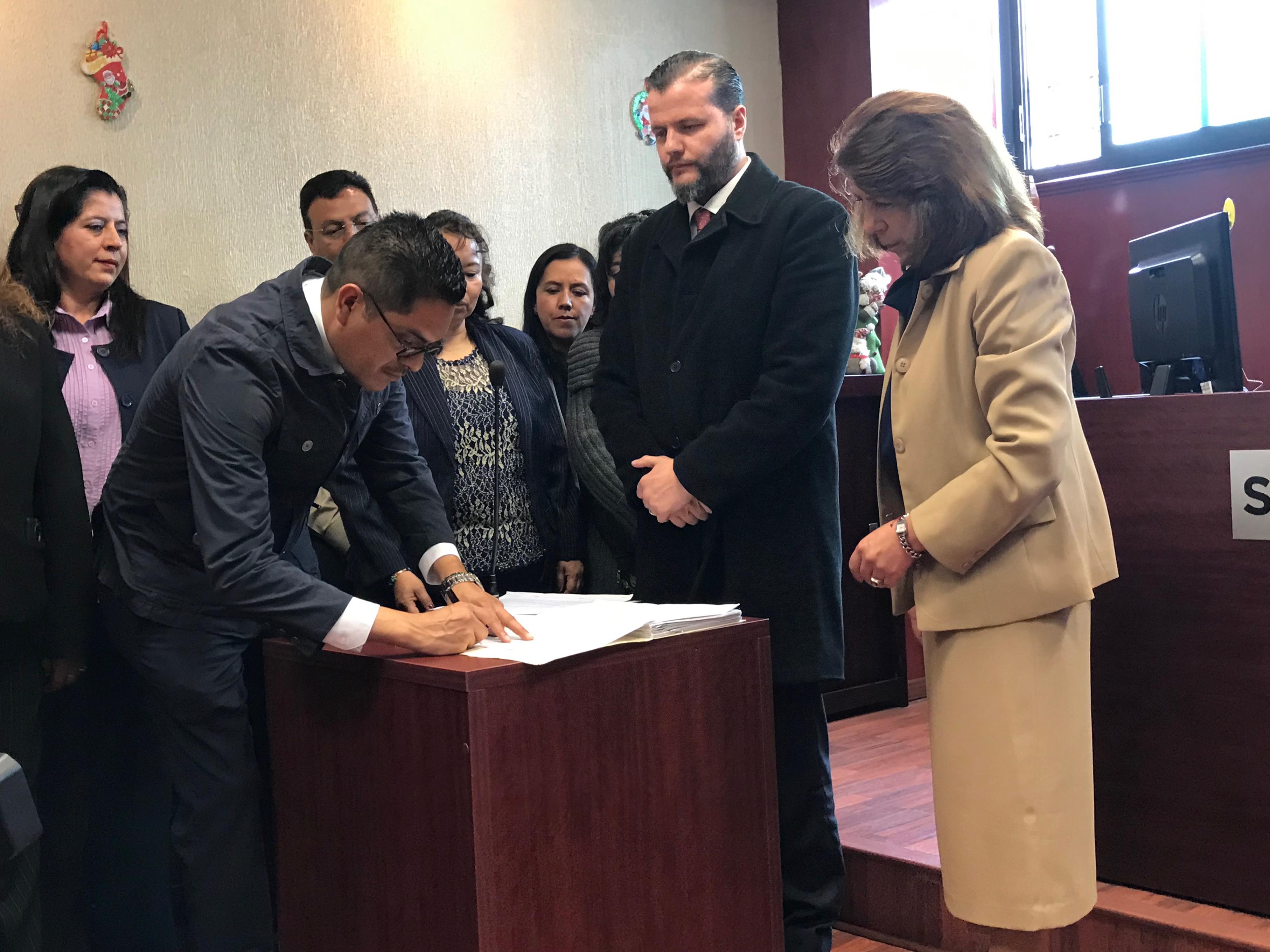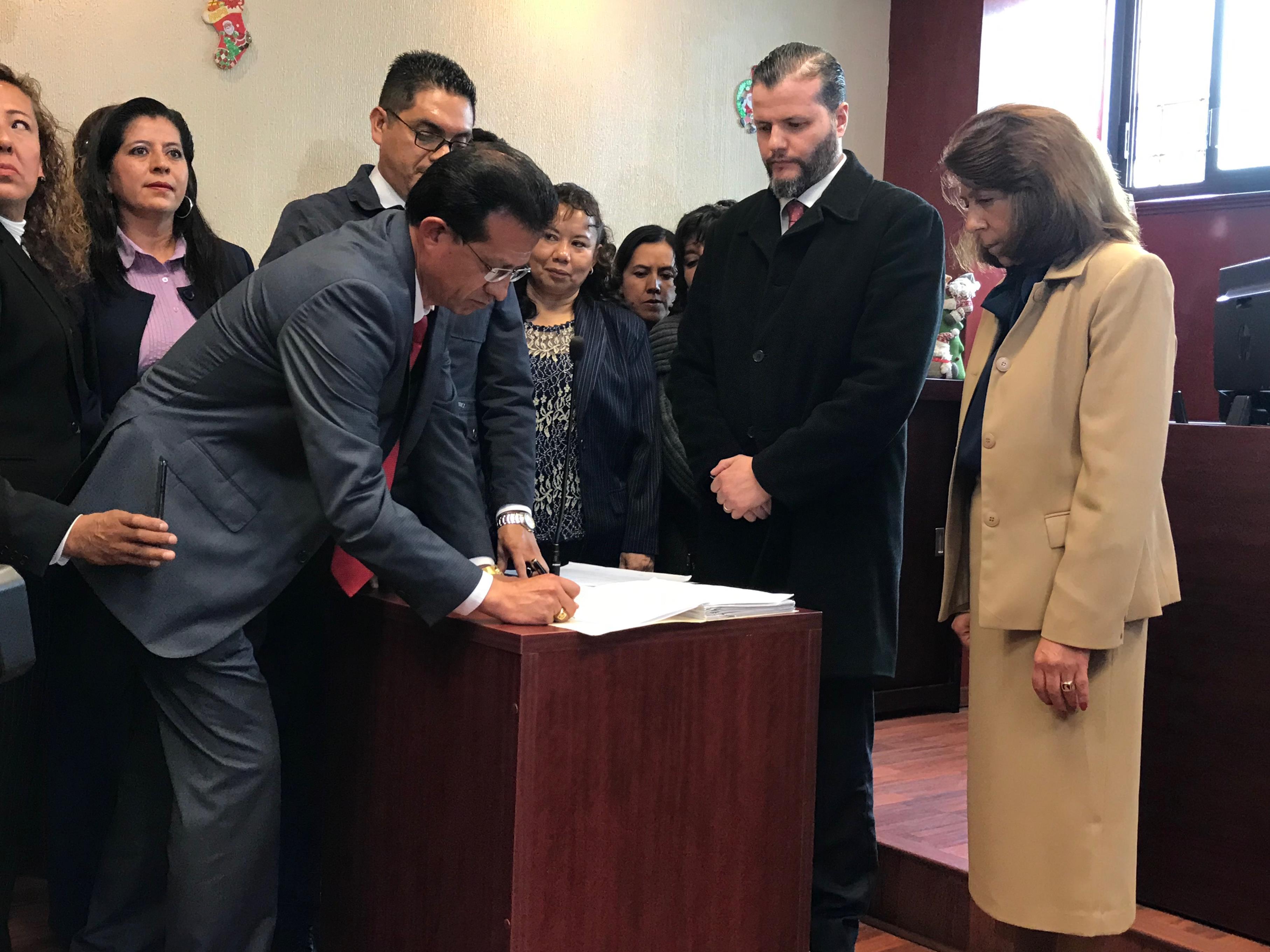 El Presidente del Tribunal Estatal de Conciliación y Arbitraje de la Secretaría del Trabajo, Gerardo Becker Ania, precisó que con la entrega de este documento se da cuenta del proceso que se llevó a cabo al interior del SMSEM.