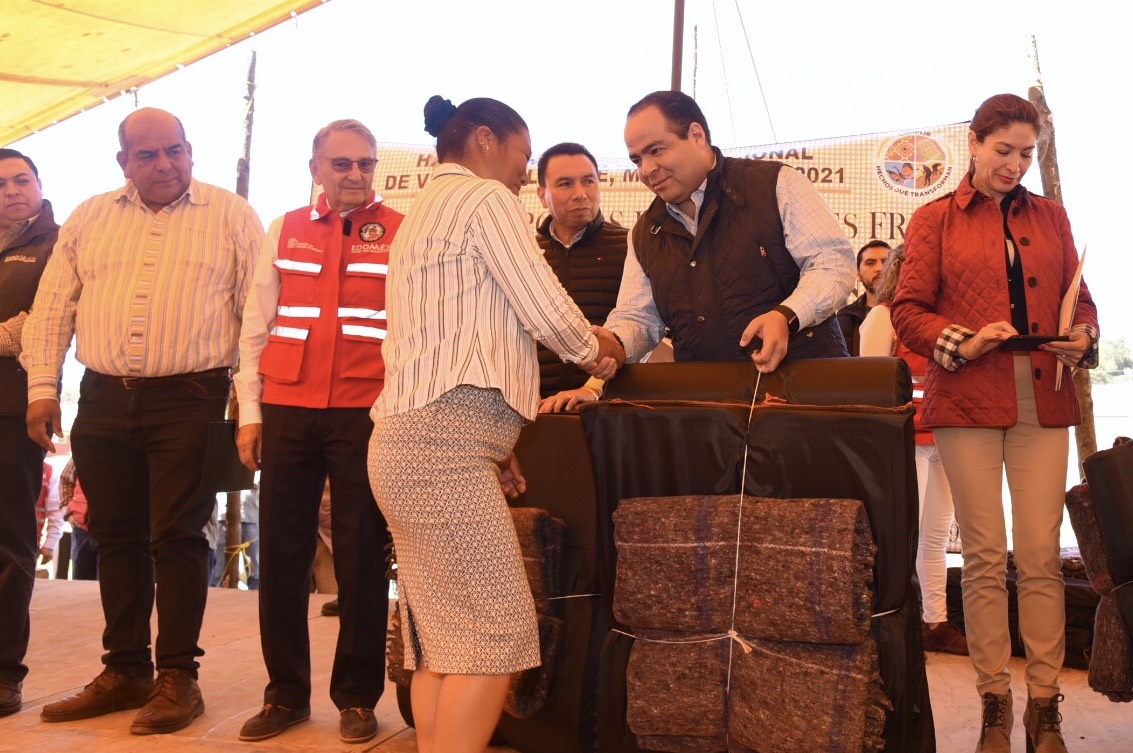 - Entregan Luis Limón, Secretario de Comunicaciones, y Luis Felipe Puente, Coordinador General de Protección Civil estatal, a nombre del Gobernador Alfredo Del Mazo, artículos para mitigar el frío de la temporada a más de 7 mil familias de Villa de Allende.