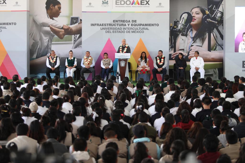 Alfredo Del Mazo puntualizó que estudian en esta universidad mil 396 alumnos y su finalidad es fortalecer a los pueblos originarios de la entidad: mazahua, otomí, nahua, matlazinca y tlahuica, así como impulsar la cultura de cada uno de ellos, y precisó que actualmente en el Estado de México son más de 400 mil mexiquenses que pertenecen a estos grupos.