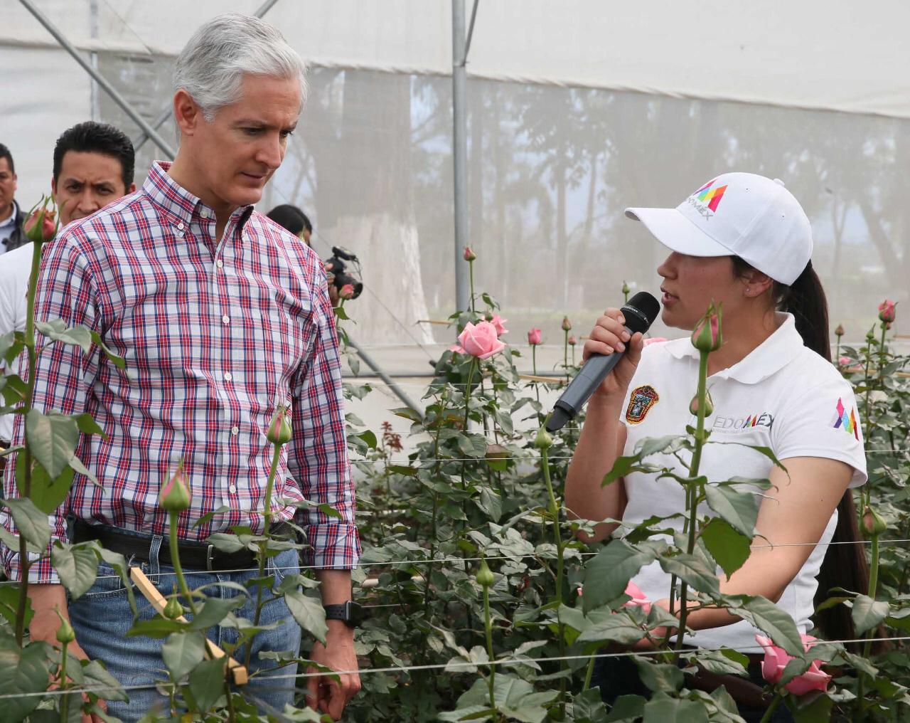 Alfredo Del Mazo, junto con los Secretarios de Desarrollo Agropecuario y Medio Ambiente, Darío Zacarías Capuchino y Jorge Rescala Pérez, respectivamente, entregó incentivos a floricultores de Tenancingo, Coatepec Harinas y Villa Guerrero, consistentes en sistemas de riego, plantas como clavel o rosa, motocultores, material para construcción de salas de empaque, invernaderos tipo túnel y sistemas fotovoltaicos, entre otros.