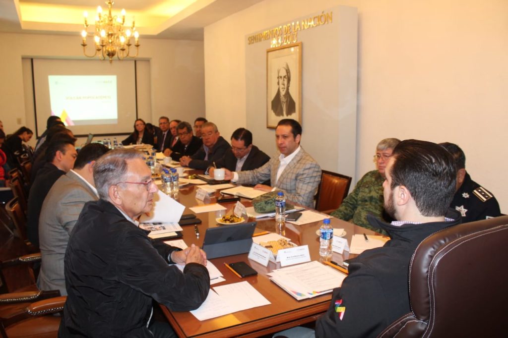 Toluca, Estado de México, 22 de febrero de 2019. El Gobierno del Estado de México, a través de la Coordinación General de Protección Civil estatal, llevó a cabo la mesa de trabajo para implementar acciones preventivas sobre la actividad que registra el volcán Popocatépetl, a fin de mantener informada a la población y a las autoridades correspondientes.