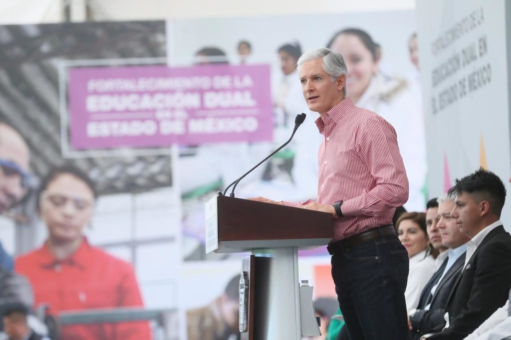 En la Universidad Politécnica del Valle de México, en Tultitlán, Del Mazo Maza señaló que hoy en día en la entidad hay más de 2 mil 800 estudiantes que han aprovechado la Educación Dual, y aseguró que el propósito es integrar a más empresas y a más jóvenes a este modelo.