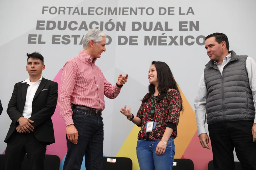 Agregó que para ello se trabaja en la consolidación del modelo dual en el Estado de México, como un programa de alto impacto que beneficie a los estudiantes y a las empresas establecidas en territorio mexiquense, para que los alumnos acudan a los centros de producción a aplicar los conocimientos y aprender nuevas tecnologías, reforzando también la enseñanza del idioma inglés.