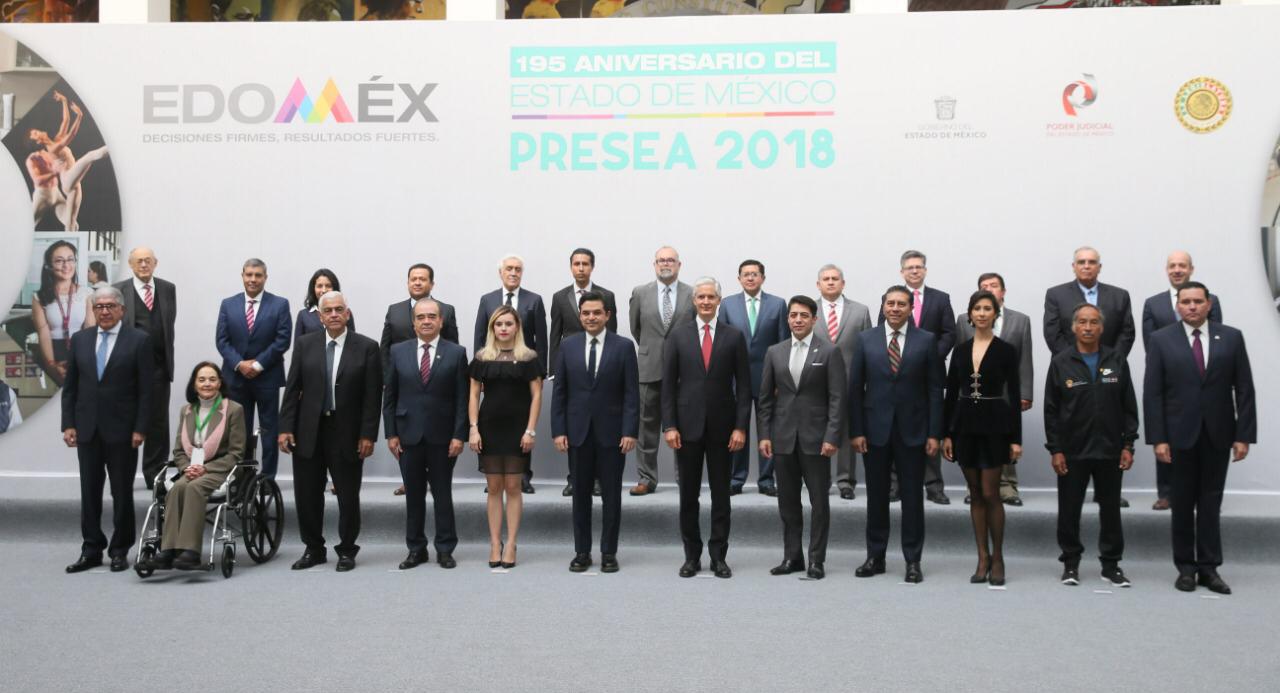 Los ganadores de la Presea Estado de México 2018, en sus 17 categorías son: Elisa Carrillo Cabrera, Artes y Letras “Sor Juana Inés de la Cruz”; Alejandro Espinosa Calderón, Ciencias “José Antonio Alzate”; Jesús Arturo Varela Ramos, Pedagogía y Docencia “Agustín González Plata”; José Socorro Neri Valenzuela, Deportes “Filiberto Navas Valdés”; Germán Sánchez Fabela, post-mortem, Mérito Cívico “Isidro Fabela Alfaro”.