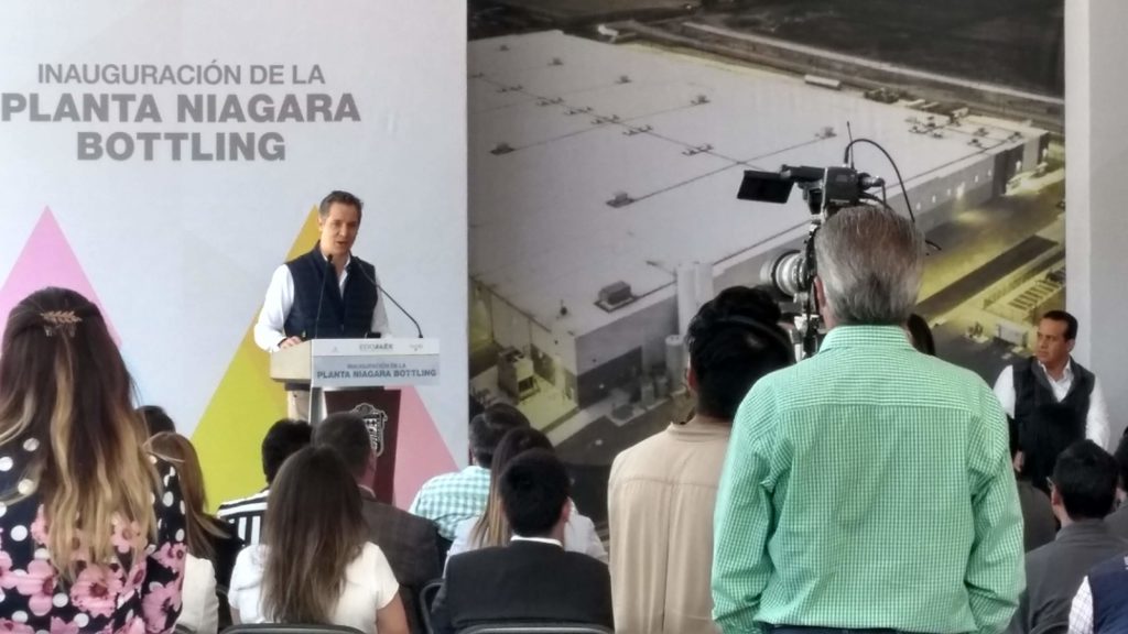 - Destaca mandatario mexiquense que la embotelladora Niagara Bottling decidió instalarse en el norte del Edoméx debido a ventajas como la ubicación estratégica, la infraestructura y la gran conectividad con otros puntos del país.