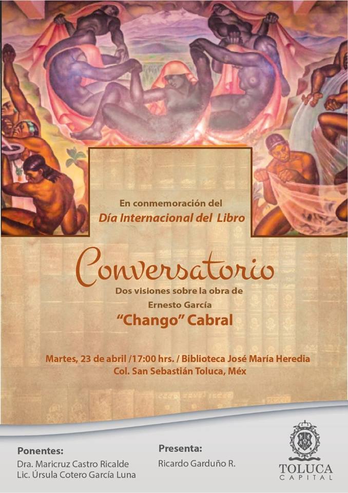 Toluca, Estado de México, lunes 22 de abril de 2019.- El gobierno municipal de Toluca conmemorará el Día Internacional del Libro, con el conversatorio Dos visiones sobre la obra de Ernesto García “Chango” Cabral. La cita será el martes 23 de abril a las 17:00 horas en la Biblioteca José María Heredia.