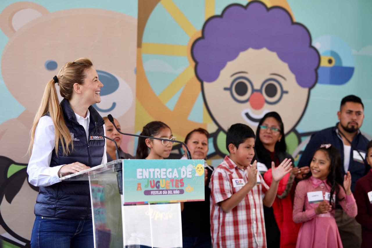 Fernanda Castillo dijo que con el respaldo de su esposo Alfredo Del Mazo, Gobernador del Estado de México, en toda la entidad se trabaja para dibujar sonrisas para que los niños sean felices, además de promover acciones que fortalezcan su integridad dentro del núcleo familiar.