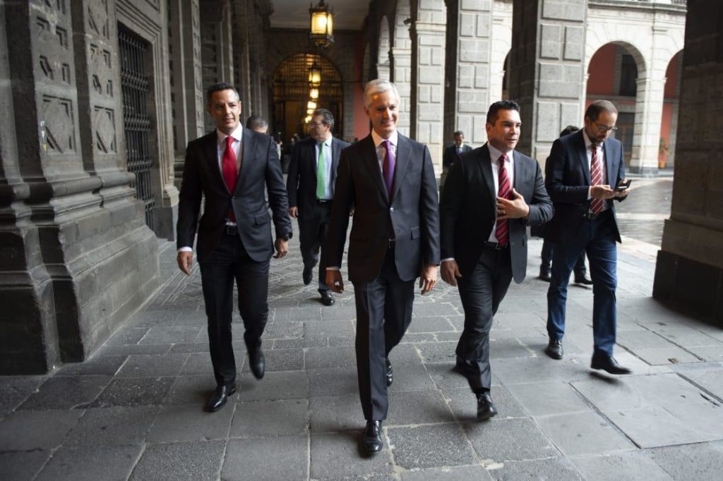 Toluca, Estado de México, 5 de junio de 2019. El Gobernador Alfredo Del Mazo Maza destacó que, en la reunión de trabajo que sostuvo esta tarde con el Presidente Andrés Manuel López Obrador, al igual que sus homólogos priistas del país, expresaron su respaldo a la federación en torno a la situación en la que se encuentra la relación comercial entre México y Estados Unidos.