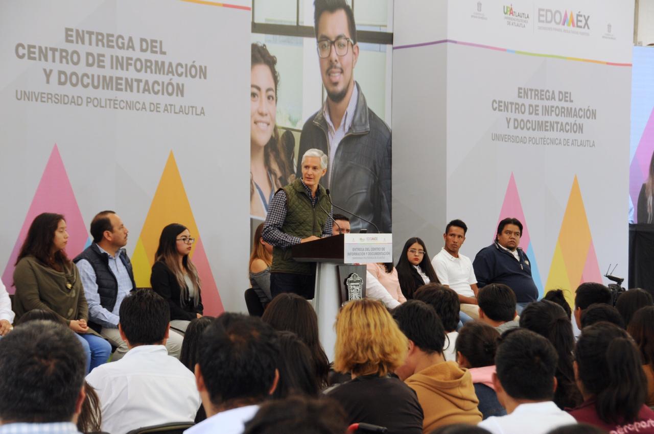 En la Universidad Politécnica de Atlautla, que abrió sus puertas en 2015 con una matrícula de 127 alumnos y que hoy cuenta con 580 escolares, Del Mazo Maza consideró que en pocos años esta institución se ha convertido en una gran oportunidad para el desarrollo de los jóvenes, pues tiene nueve planteles en la entidad, donde cursan sus estudios más de 16 mil alumnos.