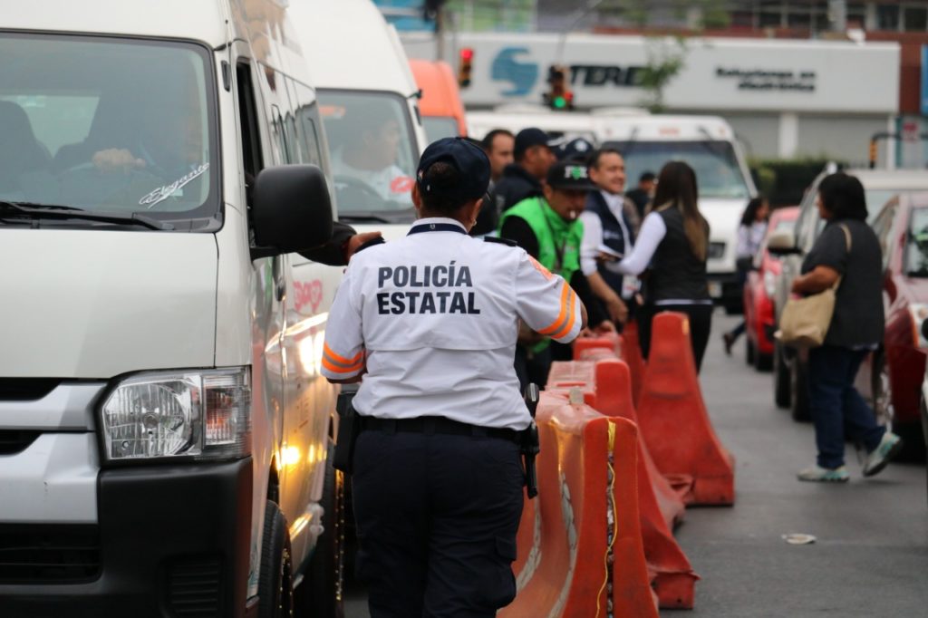 En las inmediaciones del Mexipuerto Cuatro Caminos, en Naucalpan, se revisaron 132 unidades del transporte público, de las cuales 20 fueron retenidas y 10 infraccionadas.