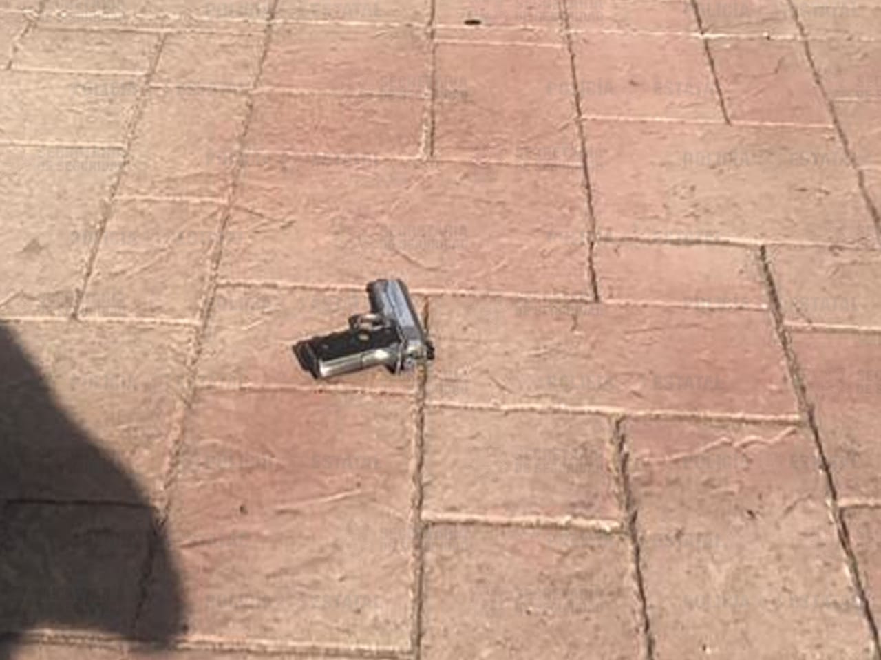 En la calle, quedó una pistola tipo escuadra color aluminio con cachas negras, calibre .45, así como una granada de humo, 17 cascajos de calibres 9 milímetros y 45 y un teléfono celular propiedad aparentemente de los agresores. La patrulla de la SS, registró también un impacto de arma de fuego.