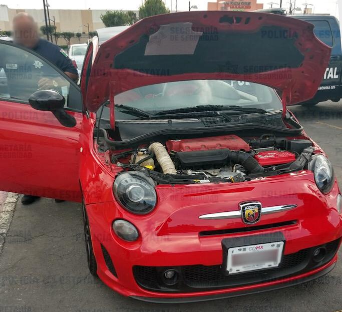 Elementos adscritos a la Dirección General de Combate al Robo de Vehículos y Transporte (DGCRVyT), mientras llevaban a cabo un recorrido de prevención contra el robo de vehículo en el interior de un Centro Comercial, ubicado sobre la carretera México – Toluca en el kilómetro 50, se percataron que un vehículo de la marca Fiat, submarca 500, color rojo, contaba con unas manipulaciones en el engomado que se puede ver a simple vista.