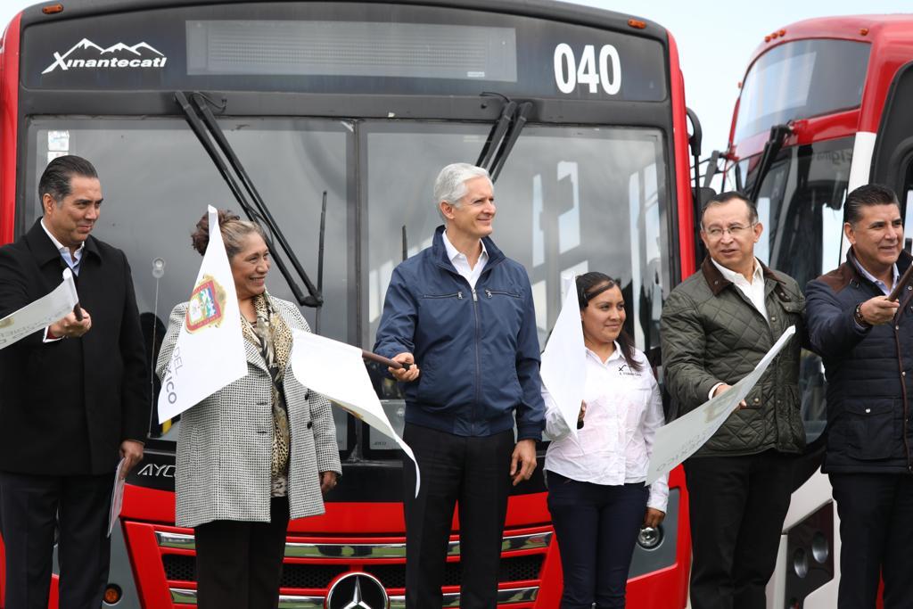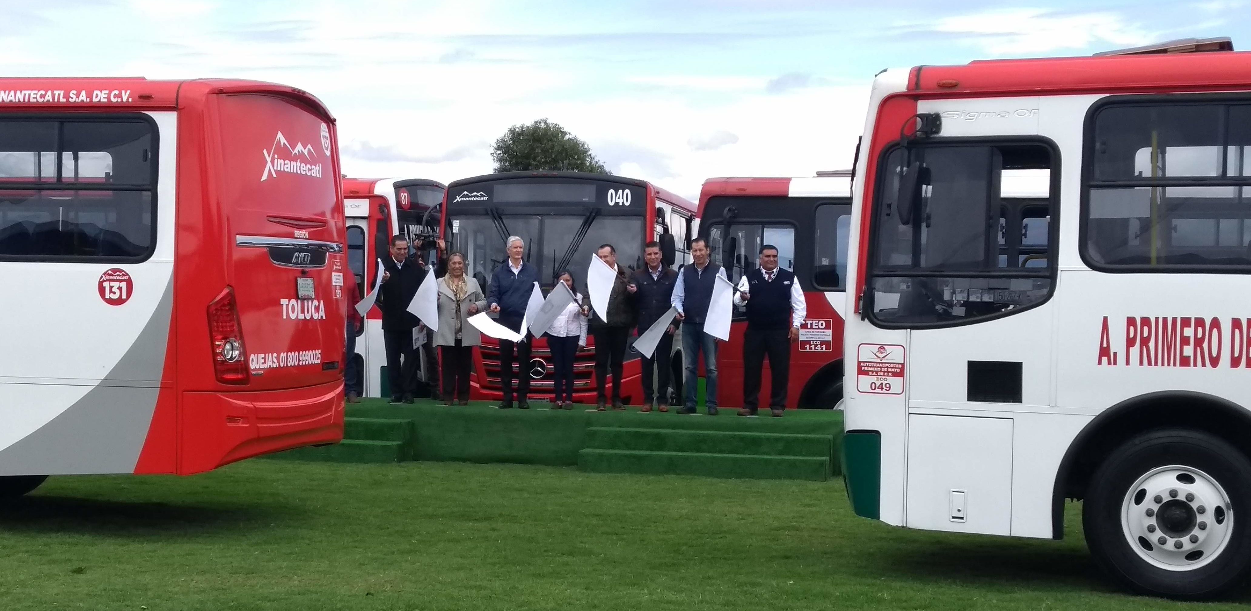 En la Unidad Deportiva de Almoloya del Río, el Gobernador Del Mazo apuntó que las unidades que este día entran en servicio, corresponden a rutas en municipios del Valle de Toluca a cargo de las empresas Línea de Turismos Toluca Tenango Estrella de Oro, Autobuses Estrella del Noreste, Servicios urbanos y suburbanos Xinantécatl, Autotransportes Temoayenses, y Autotransportes Primero de Mayo.