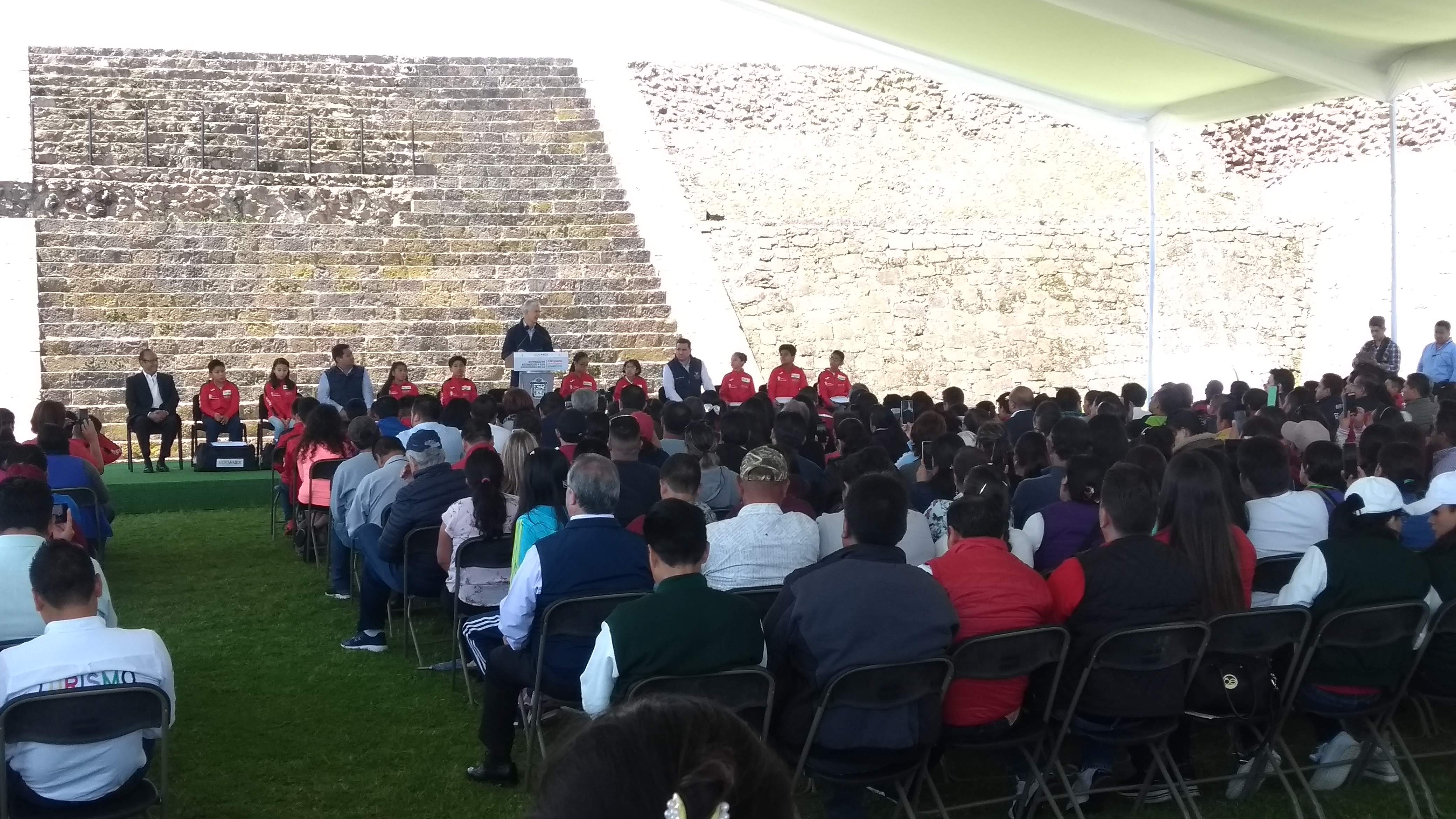- Reciben los 74 estudiantes de sexto de primaria, ganadores de la Olimpiada del Conocimiento Infantil 2019, estimulos por parte del Gobernador de la entidad, en la zona arqueológica de Teotenango.