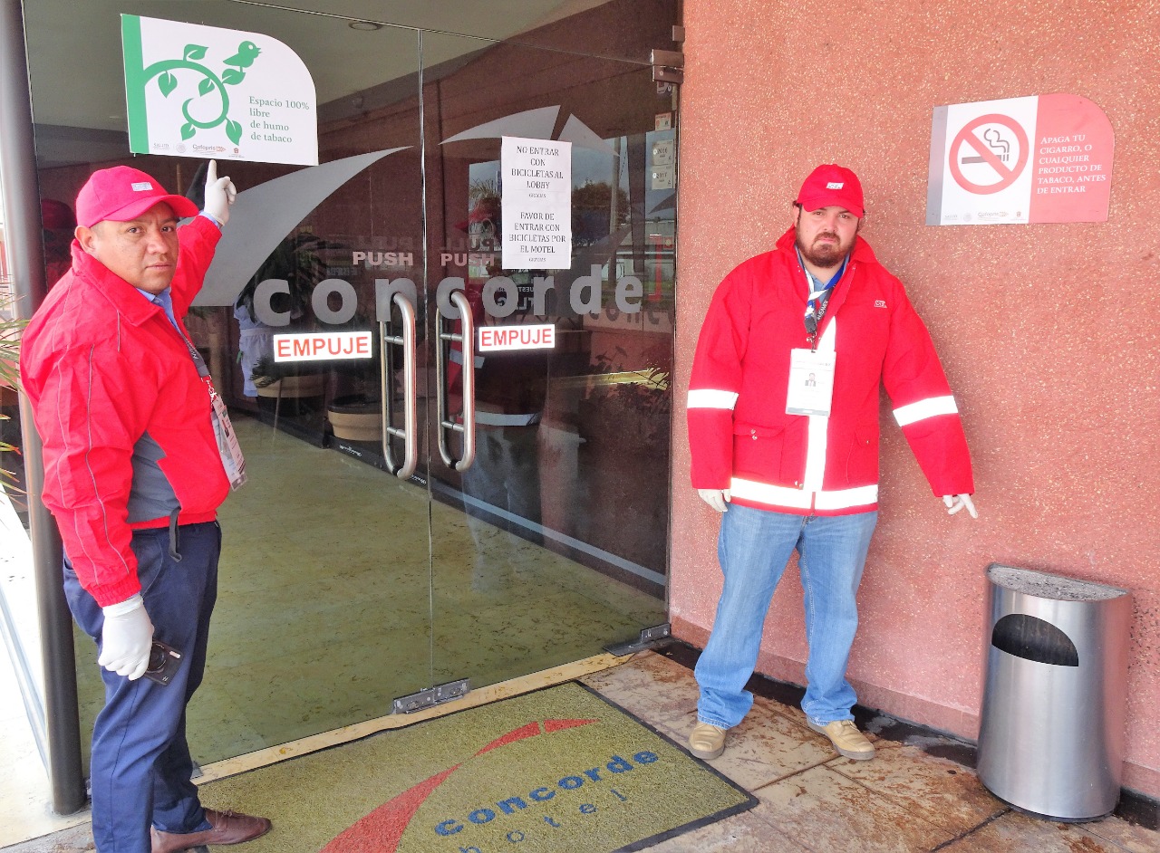 Personal sanitario revisa que cumplan con las disposiciones que marca la Ley General para el Control del Tabaco y su Reglamento, asimismo, verifica que cuenten con señalización adecuada y que en los Espacios 100 por ciento Libres de Humo de Tabaco, no haya personas fumando o rastros de que lo hayan hecho.