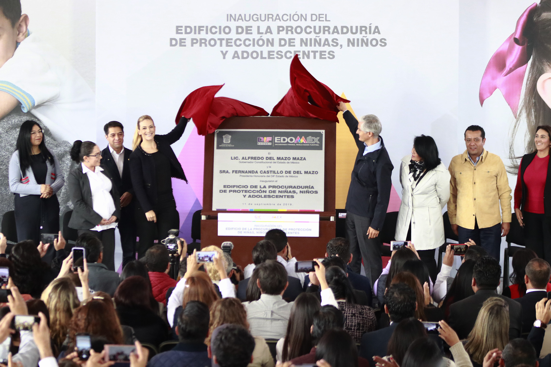 Toluca, Estado de México, 11 de septiembre de 2019. Para garantizar que se respeten los derechos de los menores de edad que requieren una atención especial y representación jurídica, el Gobernador Alfredo Del Mazo Maza y la Presidenta Honoraria del DIFEM, Fernanda Castillo de Del Mazo, inauguraron el nuevo edificio de la Procuraduría de Protección de Niñas, Niños y Adolescentes del Estado de México.