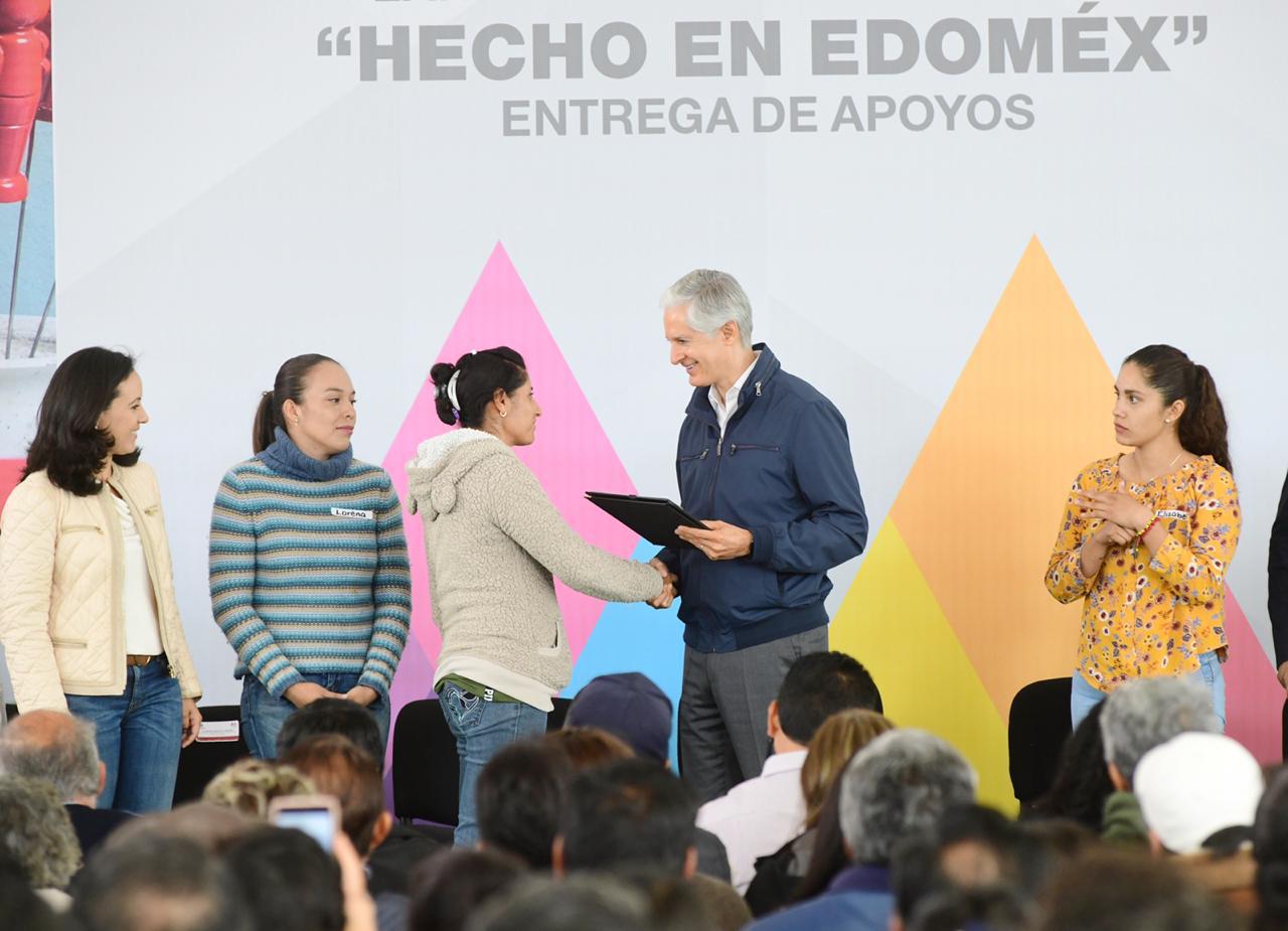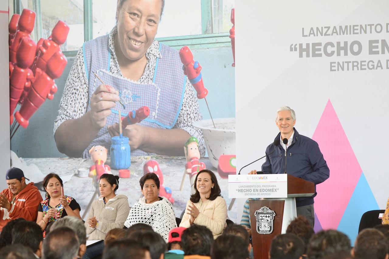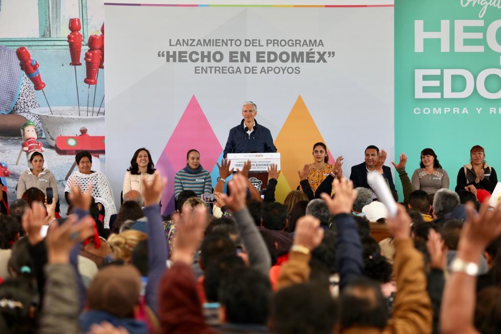 “Queremos que este programa que se llama Hecho en Edoméx, nos permita, además de dar estos apoyos que mencioné, para comprar materia prima, para maquinaria, para equipamiento de los talleres, para arreglar los locales, para hacer difusión de los productos que ustedes tienen.